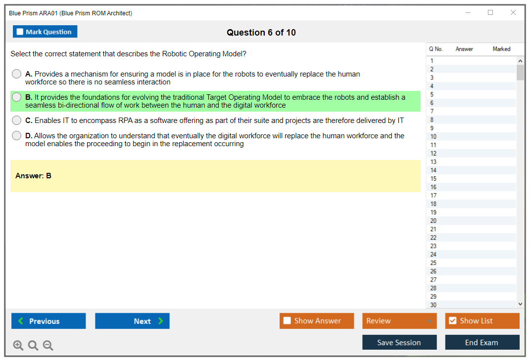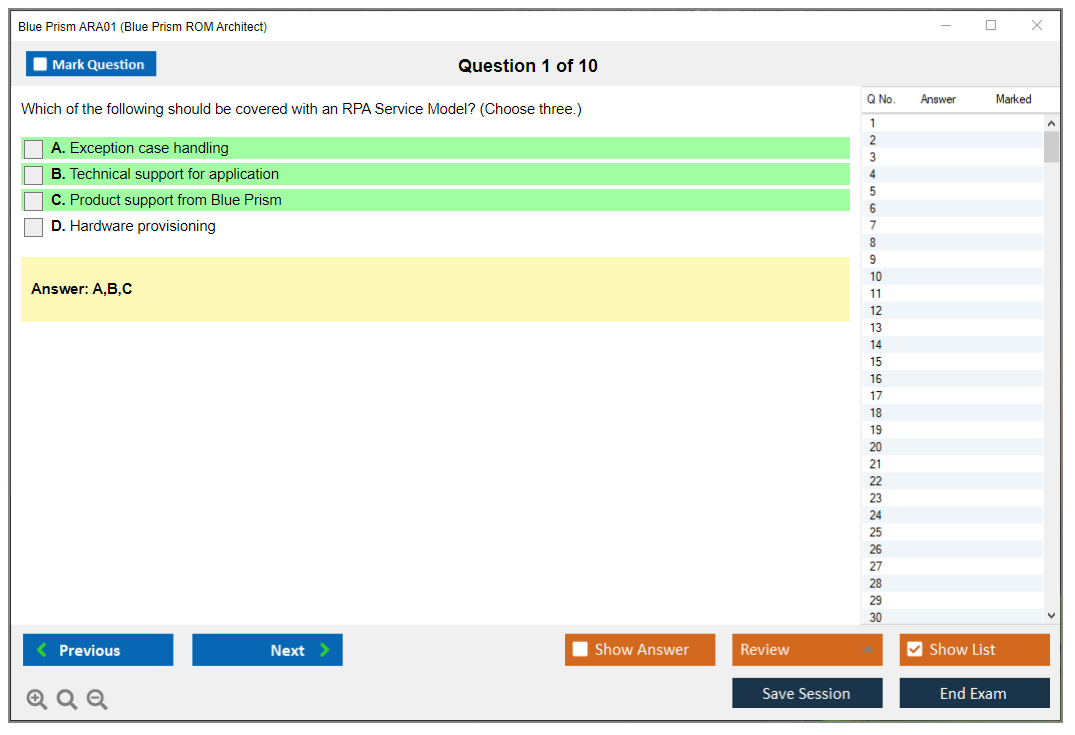 There are no formal prerequisites for the Blue Prism ARA01 Exam, but it is recommended that candidates have hands-on experience with Blue Prism and familiarity with ROM principles.