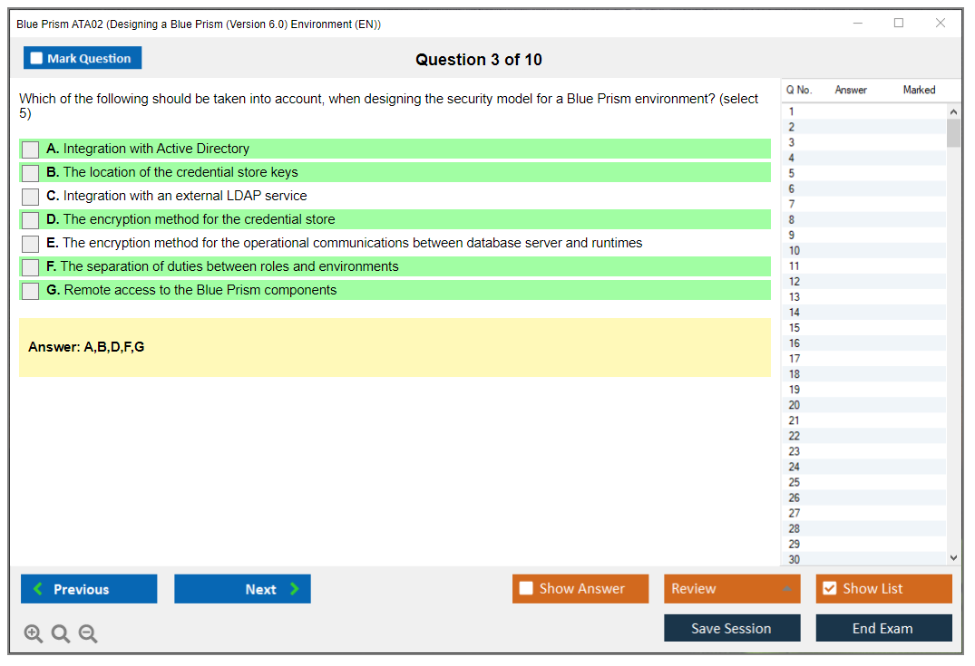 The Blue Prism ATA02 (Designing a Blue Prism (Version 6.0) Environment) Exam is designed to test a candidate's knowledge and skills in designing and configuring a Blue Prism environment. It covers various aspects such as security, scalability, and best practices for setting up a Blue Prism infrastructure.