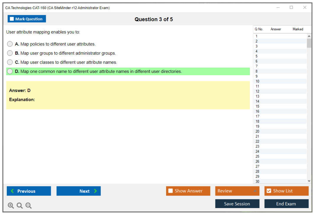 The CA Technologies CAT-160 Exam, also known as the CA SiteMinder r12 Administrator Exam, is a certification exam that tests the competency of professionals in managing and administering CA SiteMinder r12.