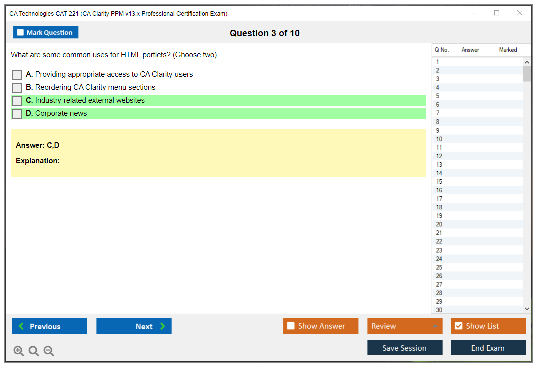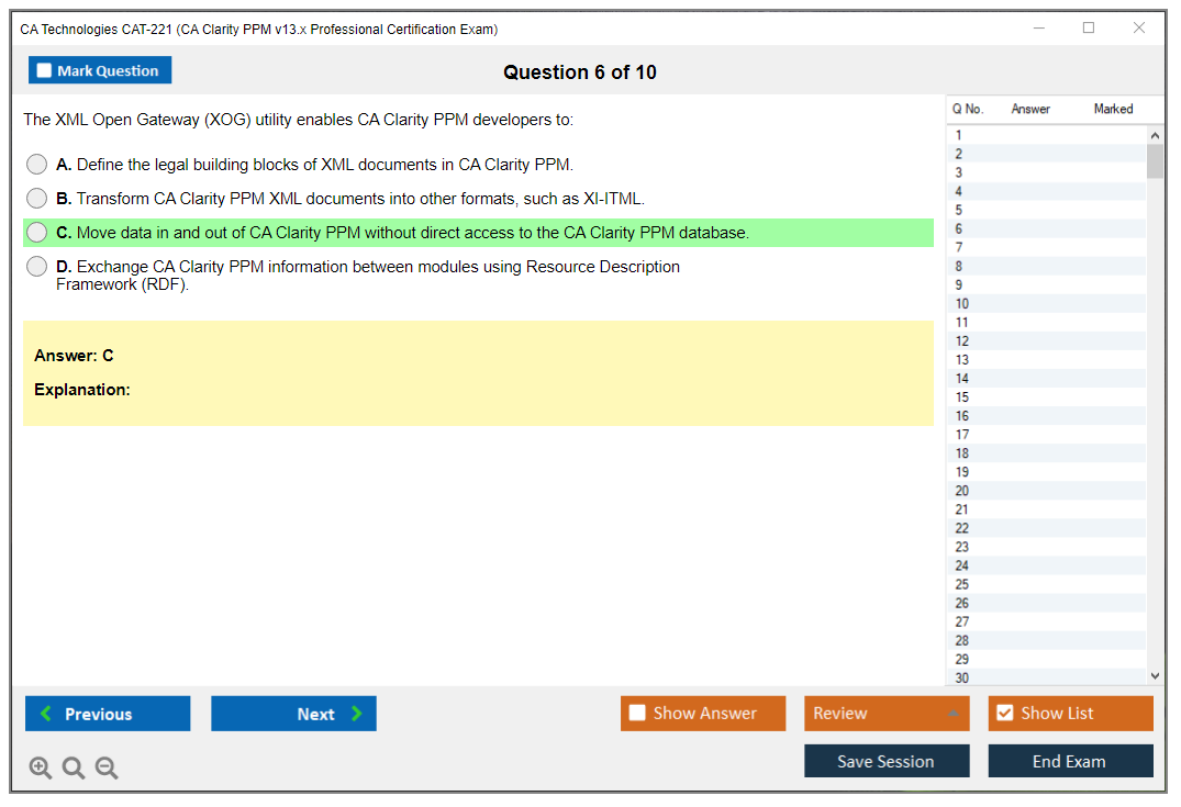 The CA Technologies CAT-221 Exam is a professional certification exam that assesses the expertise of individuals in using CA Clarity PPM v13.x, a project and portfolio management solution. It is aimed at professionals who want to demonstrate their proficiency in this software.