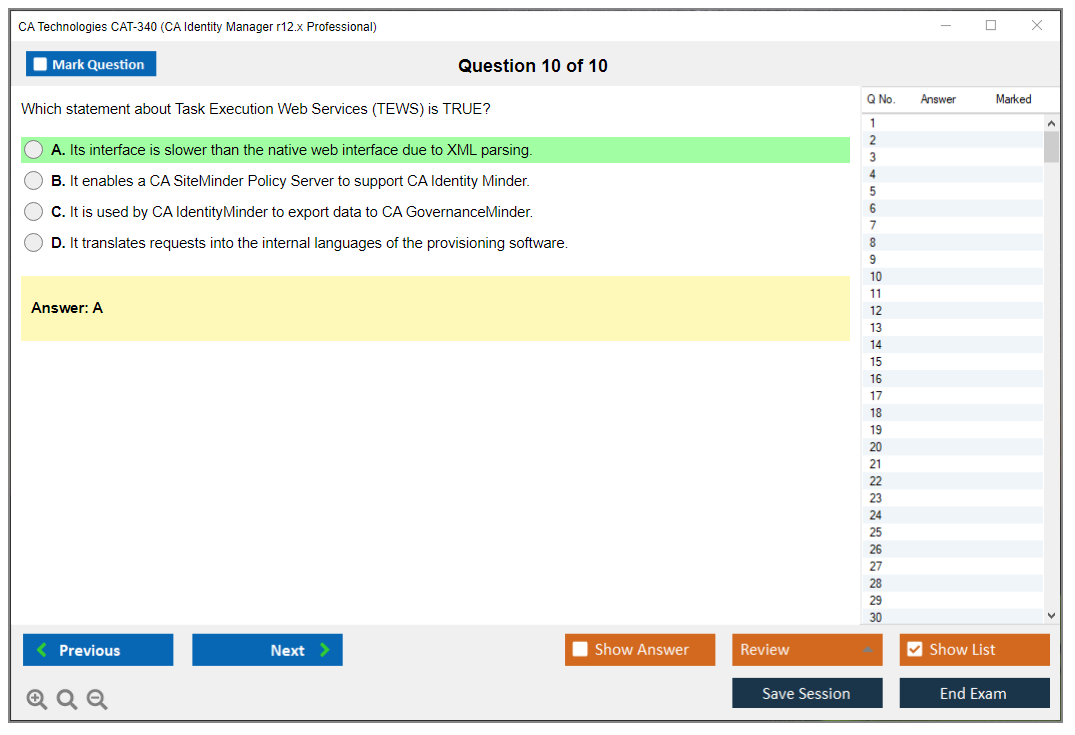 What is the Question Format of CA Technologies CAT-340 Exam?