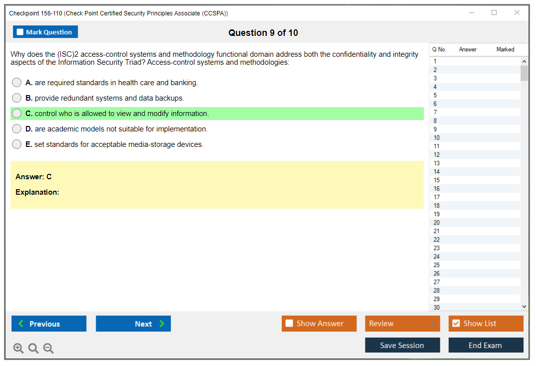 The Check Point Certified Security Principles Associate (CCSPA) Exam, also known as Checkpoint 156-110, is designed to validate foundational knowledge and skills in network security principles and Check Point technologies.