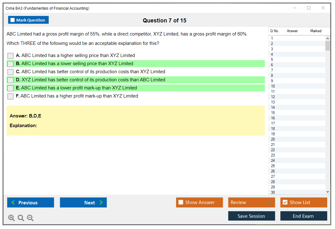 The CIMA BA3 Exam consists of 60 objective test questions.