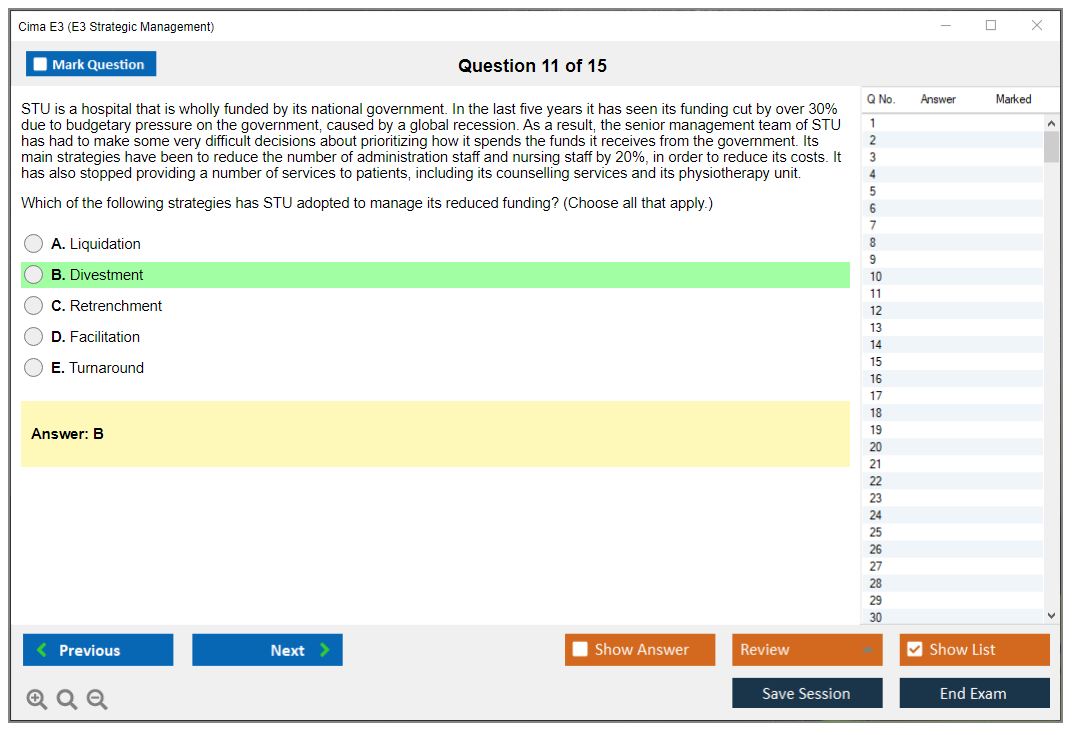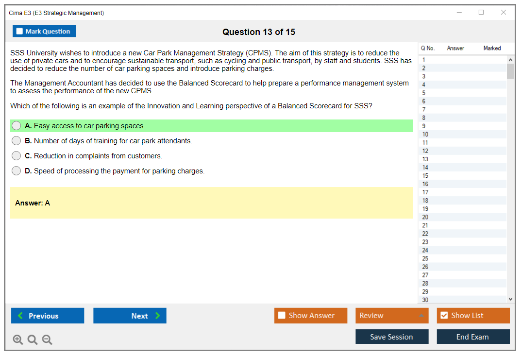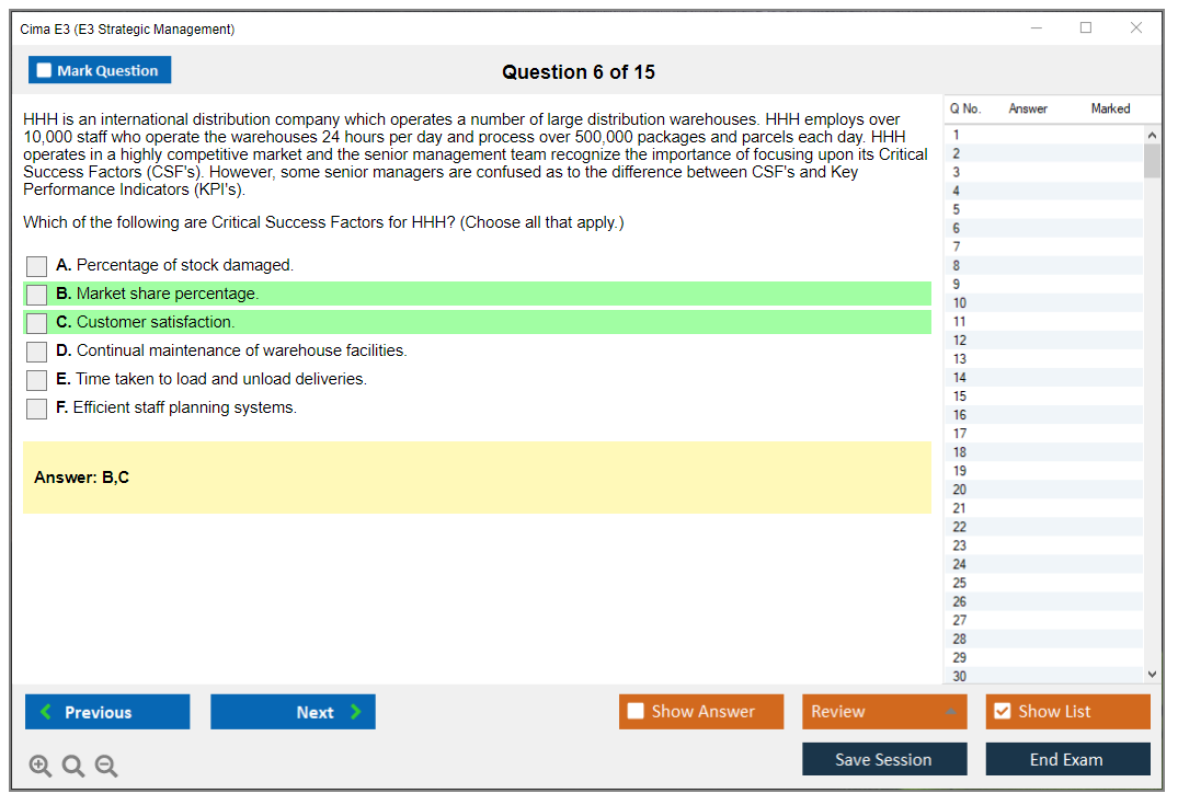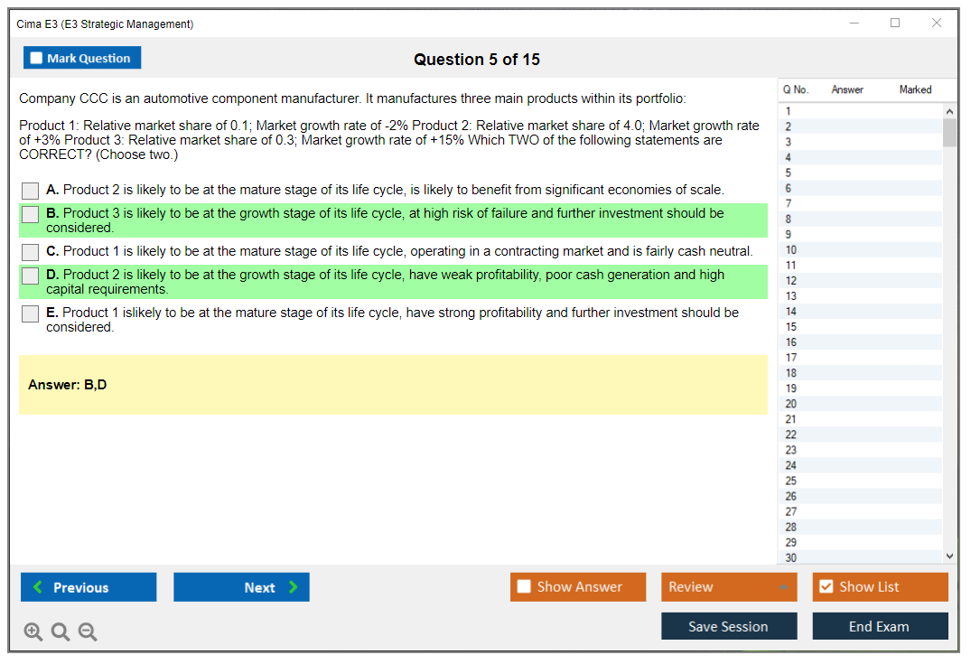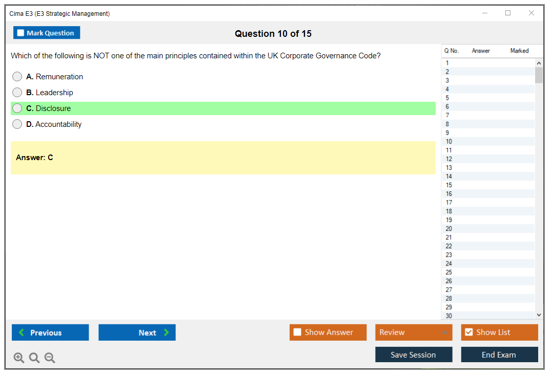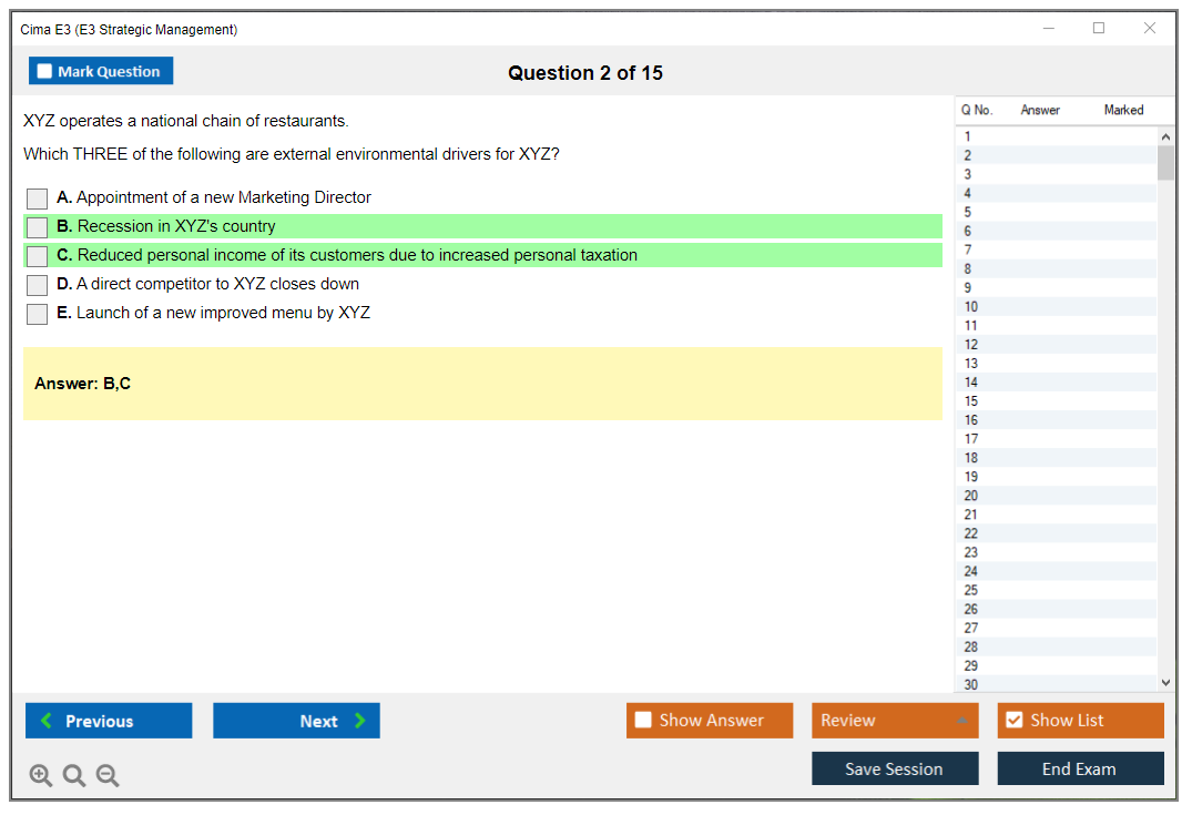 The CIMA E3 (Strategic Management) Exam is part of the Chartered Institute of Management Accountants (CIMA) professional qualification. It focuses on strategic management and leadership, preparing candidates to develop and implement successful business strategies.