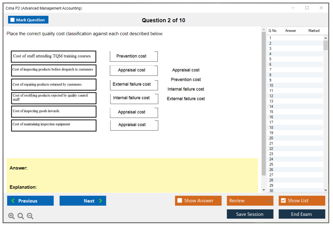 The CIMA P2 (Advanced Management Accounting) Exam is part of the Chartered Institute of Management Accountants (CIMA) qualification framework. It focuses on advanced management accounting techniques, including cost management, budgeting, and performance evaluation. The exam aims to develop strategic decision-making skills and enhance the ability to manage financial resources effectively.