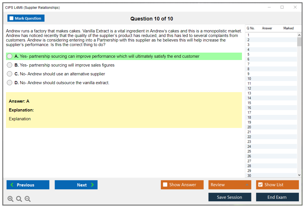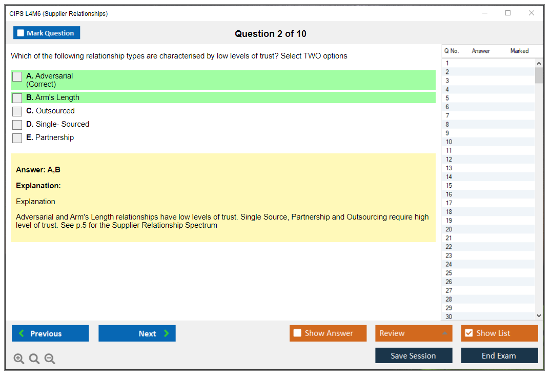 The CIPS L4M6 (Supplier Relationships) exam is part of the Chartered Institute of Procurement & Supply (CIPS) Level 4 Diploma in Procurement and Supply. This module focuses on developing effective relationships with suppliers, understanding the dynamics of supplier relationships, and the impact of these relationships on procurement and supply chain strategies.