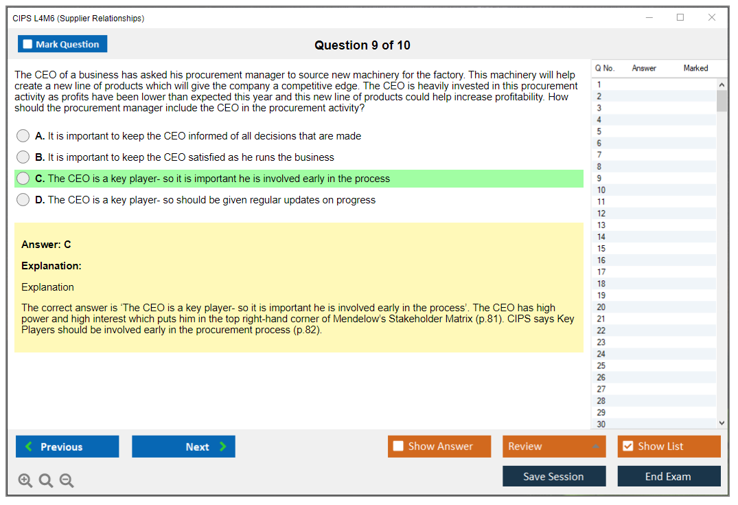 The CIPS Level 4 Diploma in Procurement and Supply is a professional qualification designed to provide procurement professionals with the skills and knowledge required to manage supply chains effectively. The L4M6 exam specifically addresses supplier relationships, including the principles and practices involved in managing and developing these relationships.