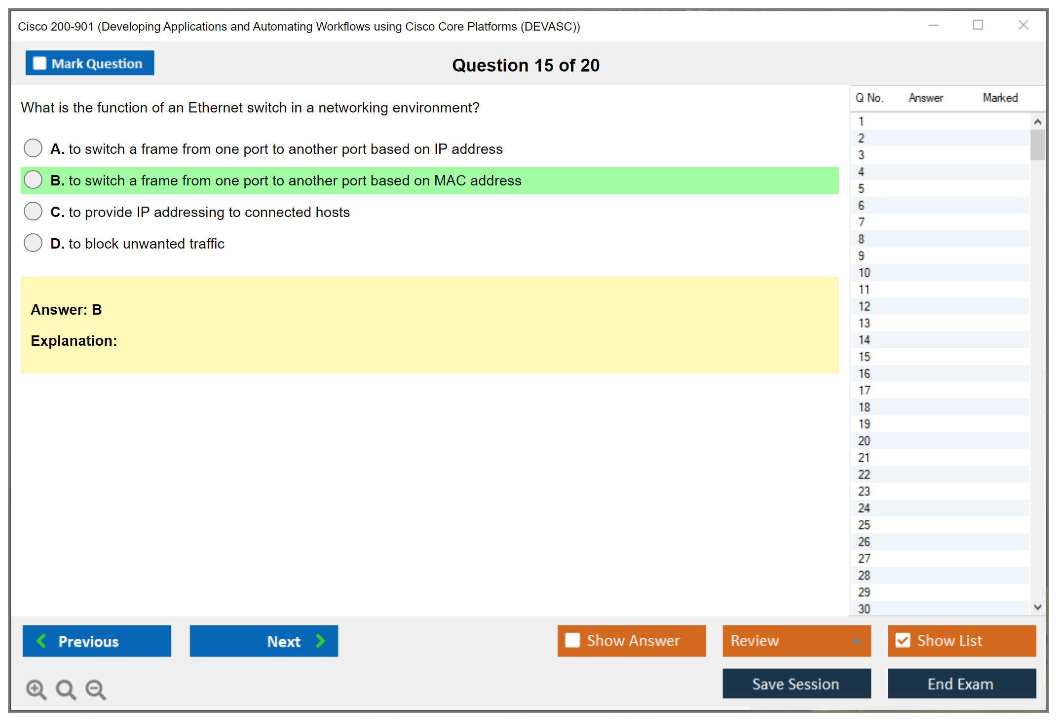 The Cisco 200-901 (DevNet Associate (DEVASC)) Exam is designed for developers and network engineers to validate their skills in developing and maintaining applications built on Cisco platforms. It covers foundational knowledge in software development and design, understanding and using APIs, Cisco platforms and development, application deployment and security, and infrastructure and automation.