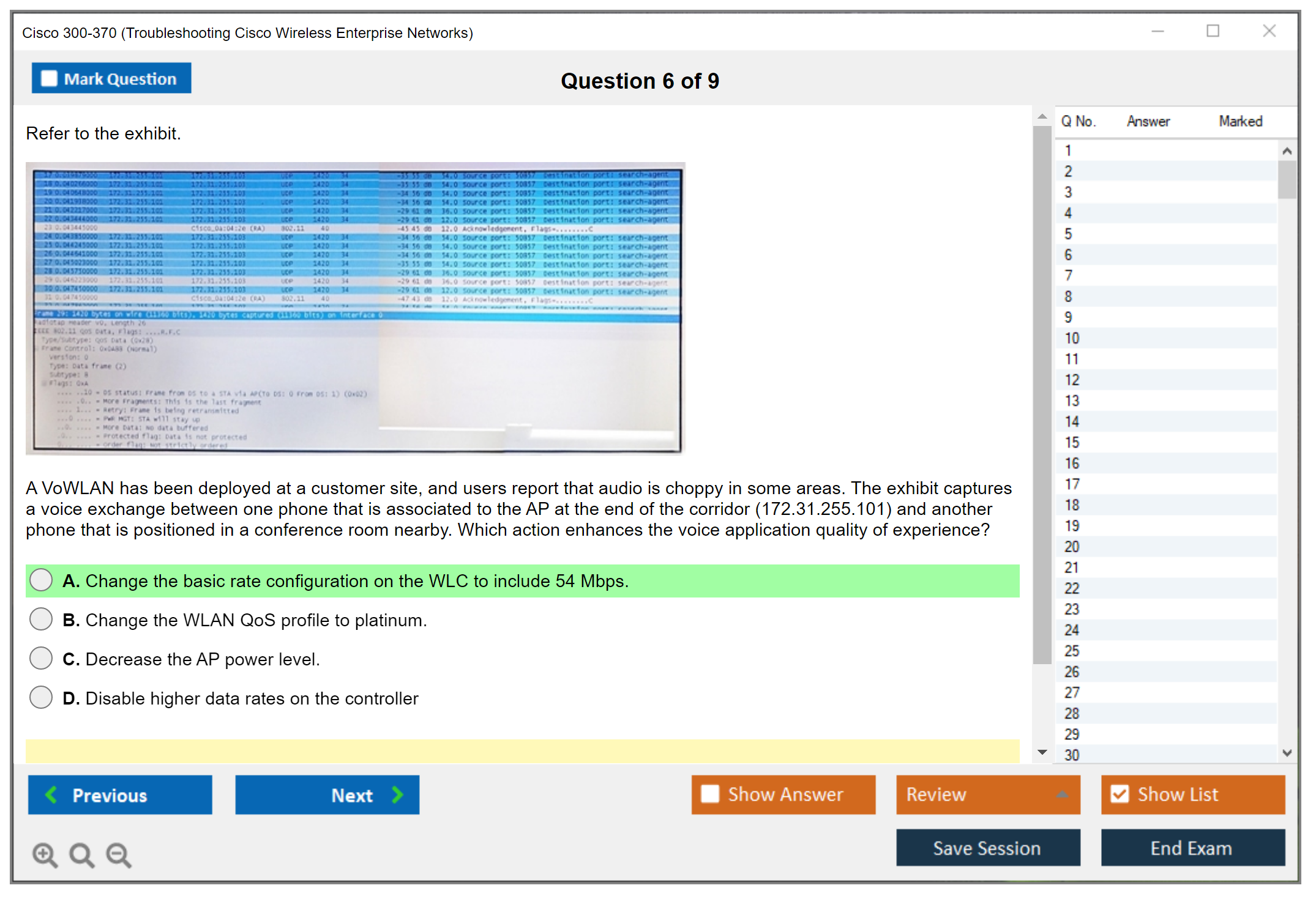 The Cisco 300-370 (Troubleshooting Cisco Wireless Enterprise Networks) exam is designed to test a candidate's knowledge and skills required to troubleshoot enterprise wireless network issues. It is part of the CCNP Wireless certification.