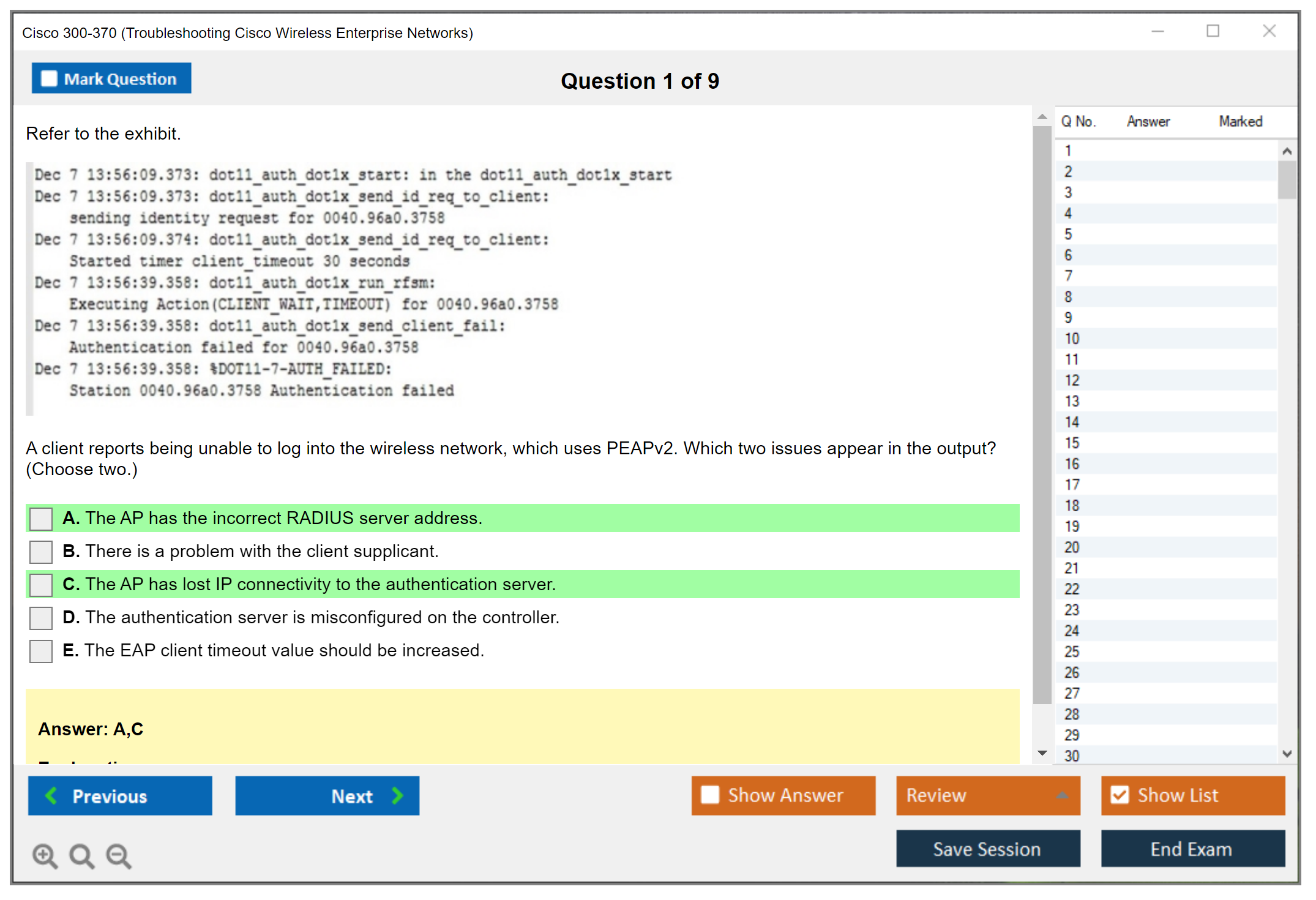 Note: Cisco 300-370 (Troubleshooting Cisco Wireless Enterprise Networks) will not receive any new updates.