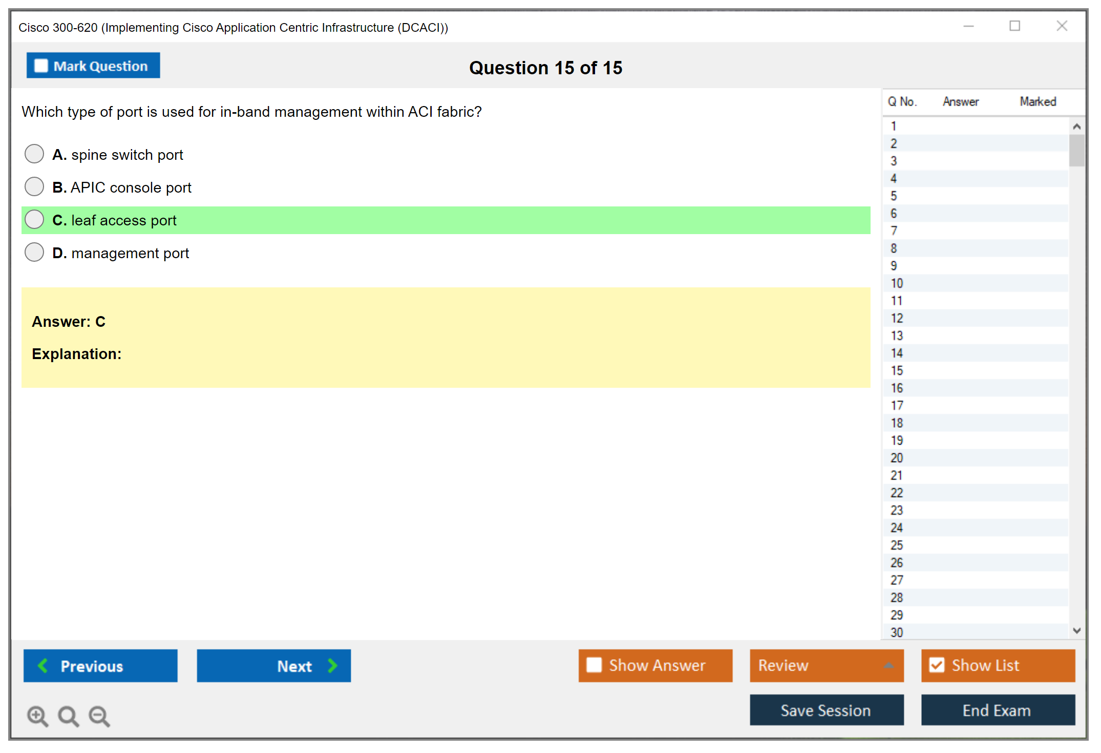 The Cisco 300-620 DCACI exam focuses on implementing Cisco Application Centric Infrastructure (ACI). It validates a candidate's knowledge and skills related to ACI architecture, fabric infrastructure, policies, VMM integration, and more.