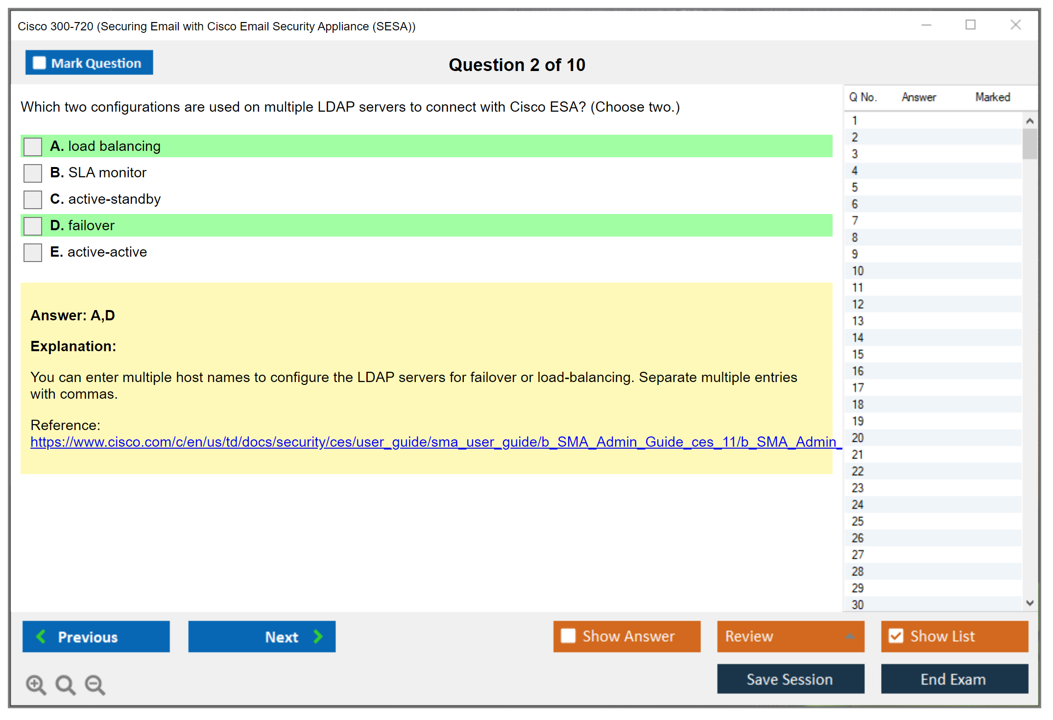 The Cisco 300-720 (Securing Email with Cisco Email Security Appliance (300-720 SESA)) exam is designed to validate the knowledge and skills required to secure email communication using Cisco Email Security Appliance. This exam is part of the Cisco Certified Specialist - Email Content Security certification and is also a concentration exam for the CCNP Security certification.