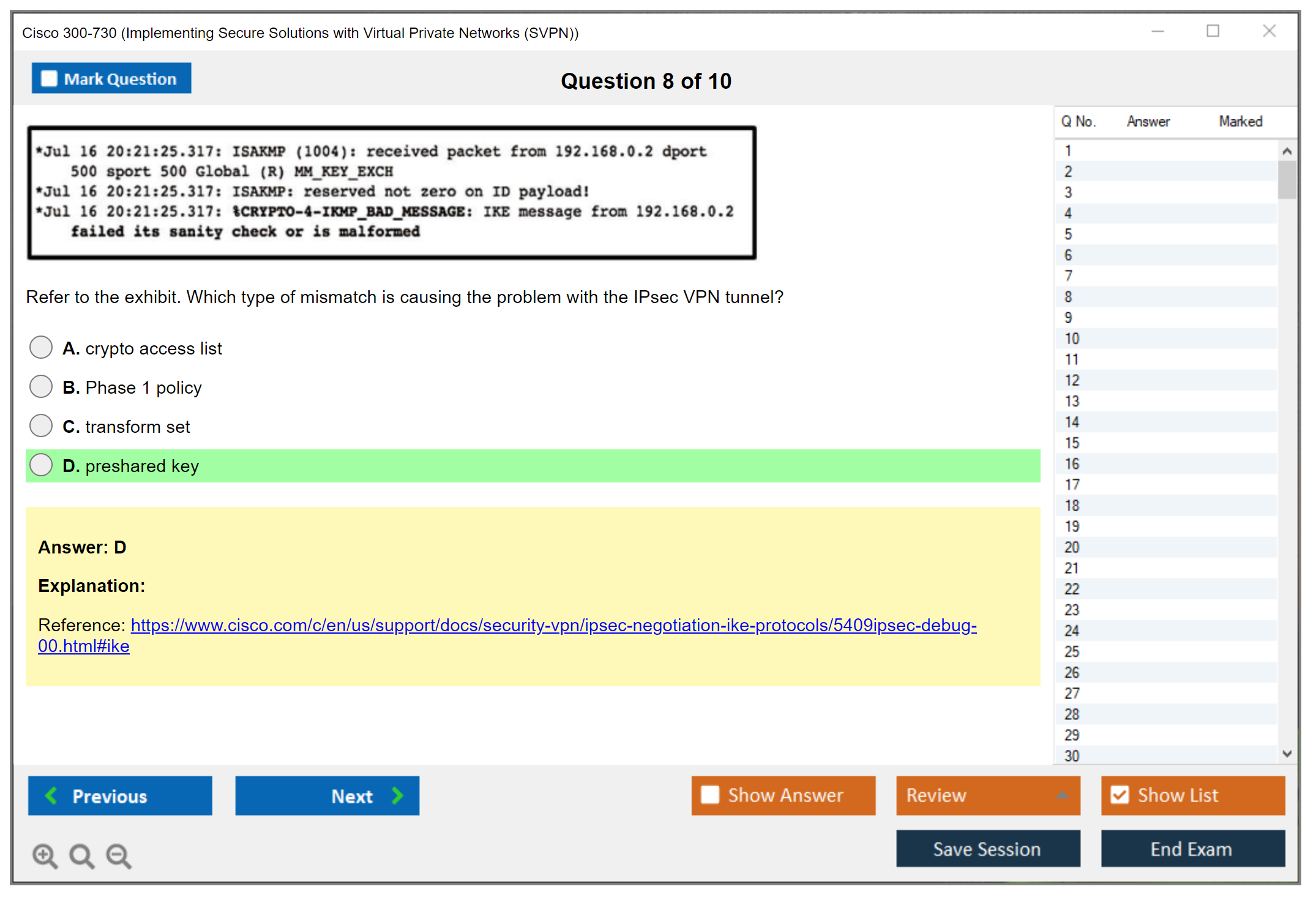The Cisco 300-730 exam, also known as Implementing Secure Solutions with Virtual Private Networks (SVPN), is part of the Cisco Certified Specialist - Network Security VPN Implementation certification. It focuses on testing the candidate's abilities to implement and troubleshoot secure VPN solutions.