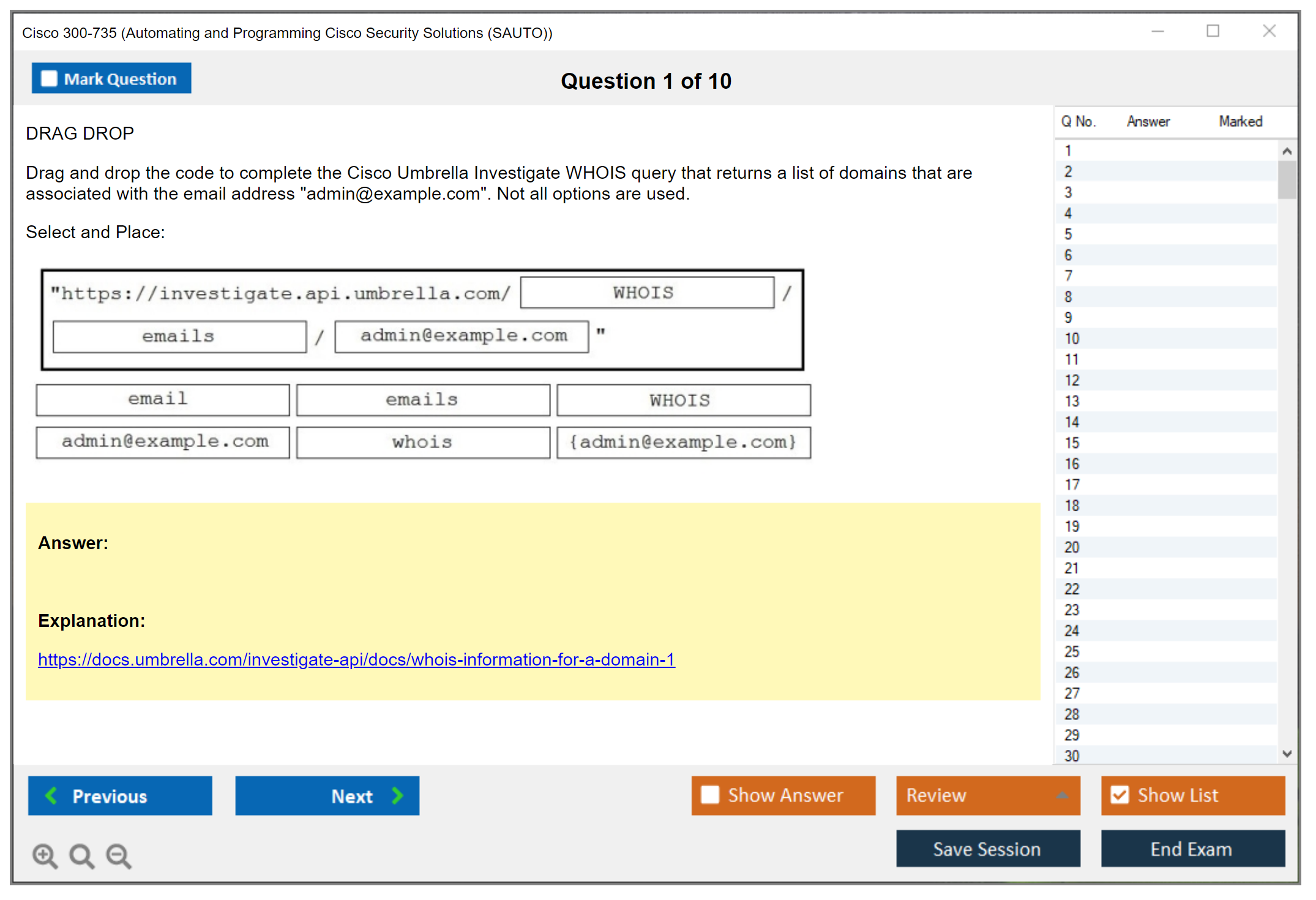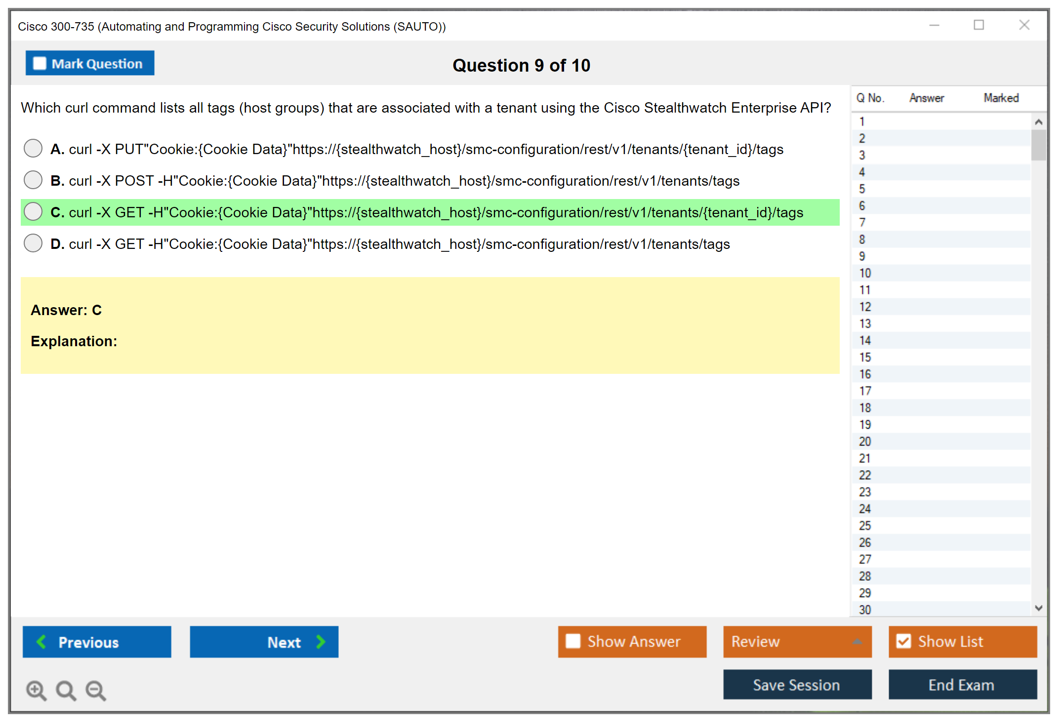 Sample questions for the Cisco 300-735 exam can be found on the official Cisco website or through various exam preparation resources and practice tests.