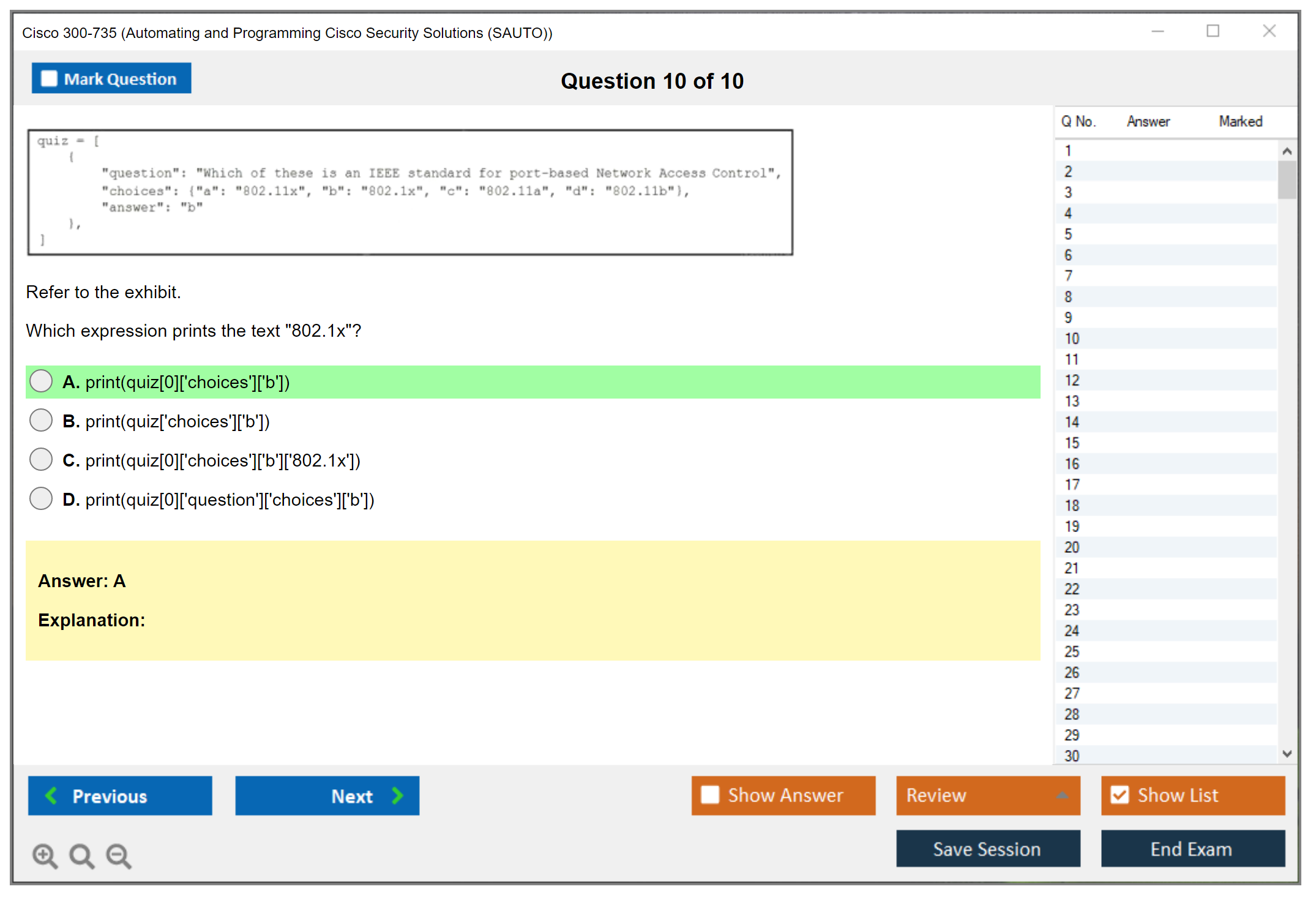 The question format for the Cisco 300-735 exam includes multiple-choice questions, drag-and-drop questions, and simulations.