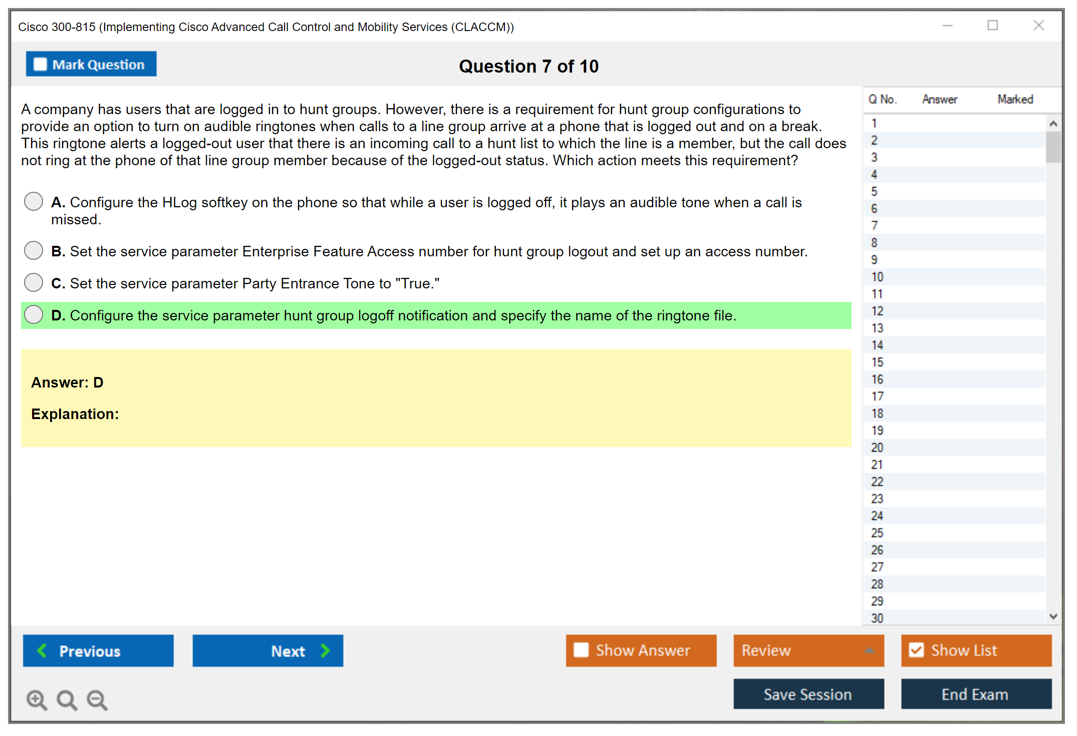 The Cisco 300-815 exam, also known as Implementing Cisco Advanced Call Control and Mobility Services (CLACCM), is part of the Cisco Certified Network Professional (CCNP) Collaboration certification track. It assesses the candidate's ability to implement and troubleshoot advanced call control and mobility services.