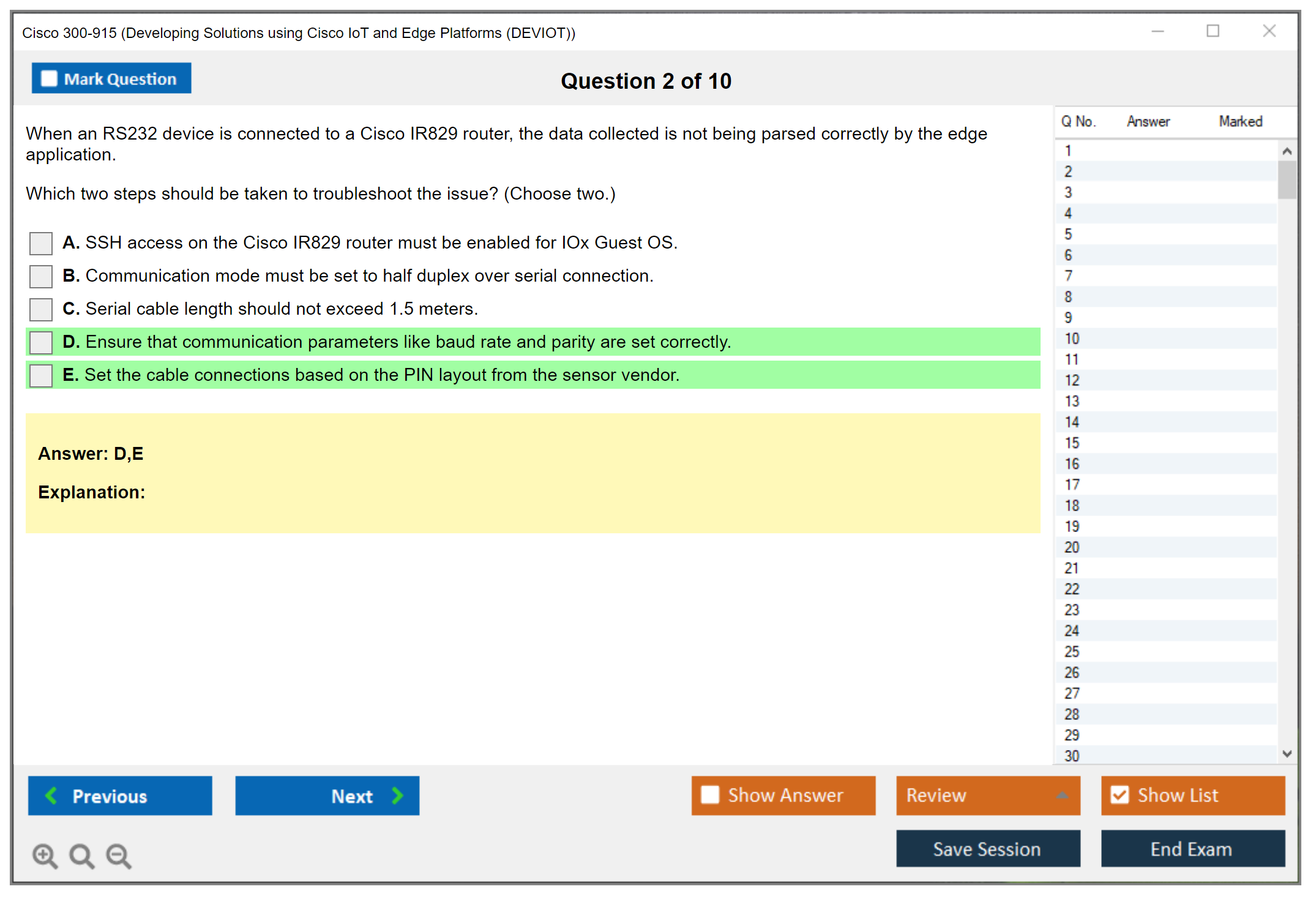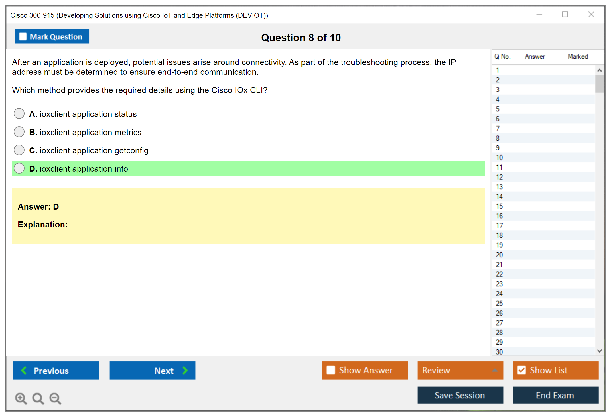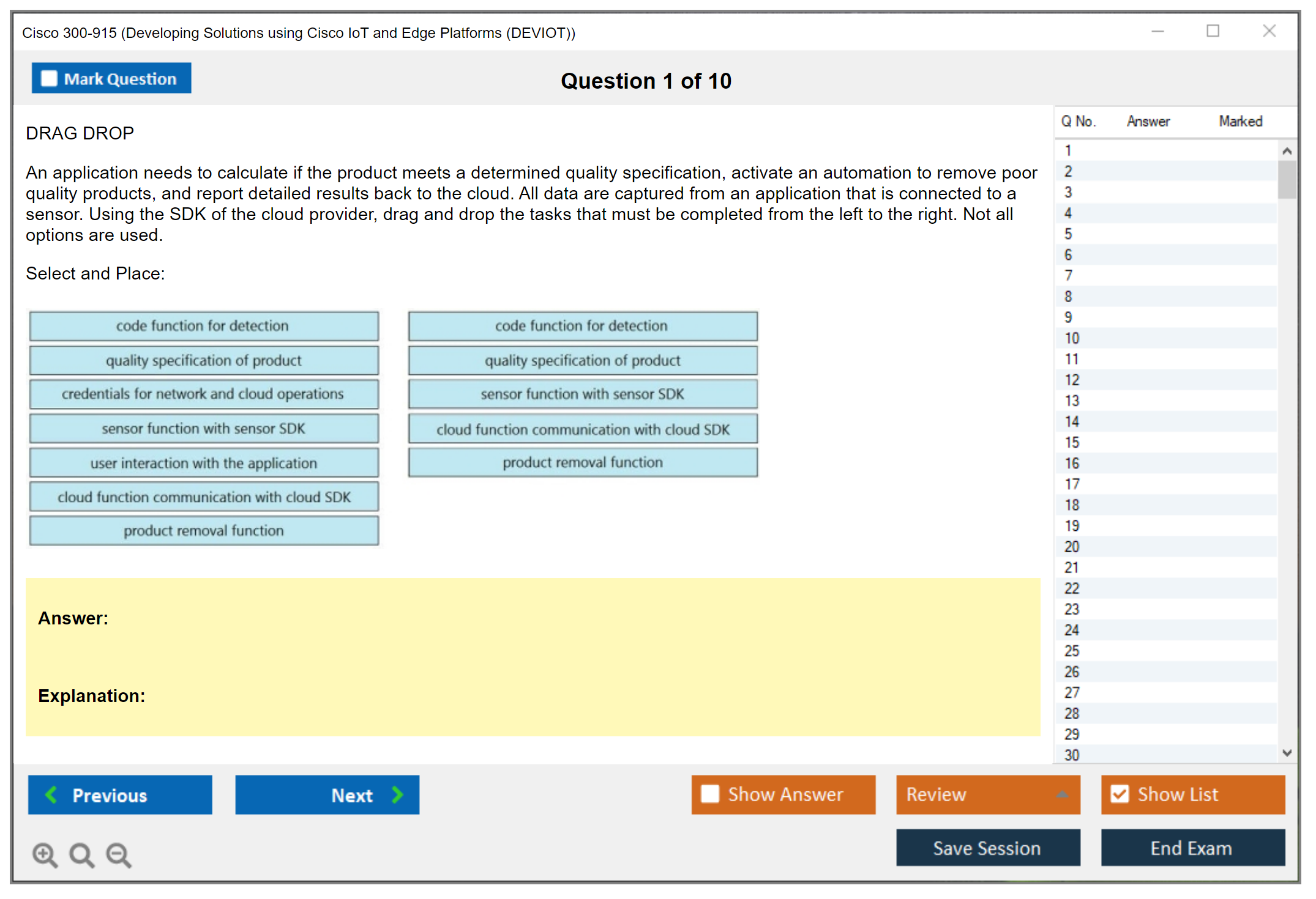 The Cisco 300-915 exam is part of the Cisco Certified DevNet Specialist certification track and focuses on developing solutions using Cisco IoT and edge platforms.
