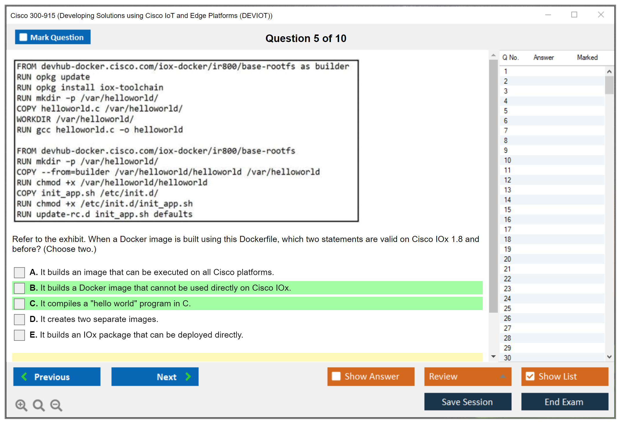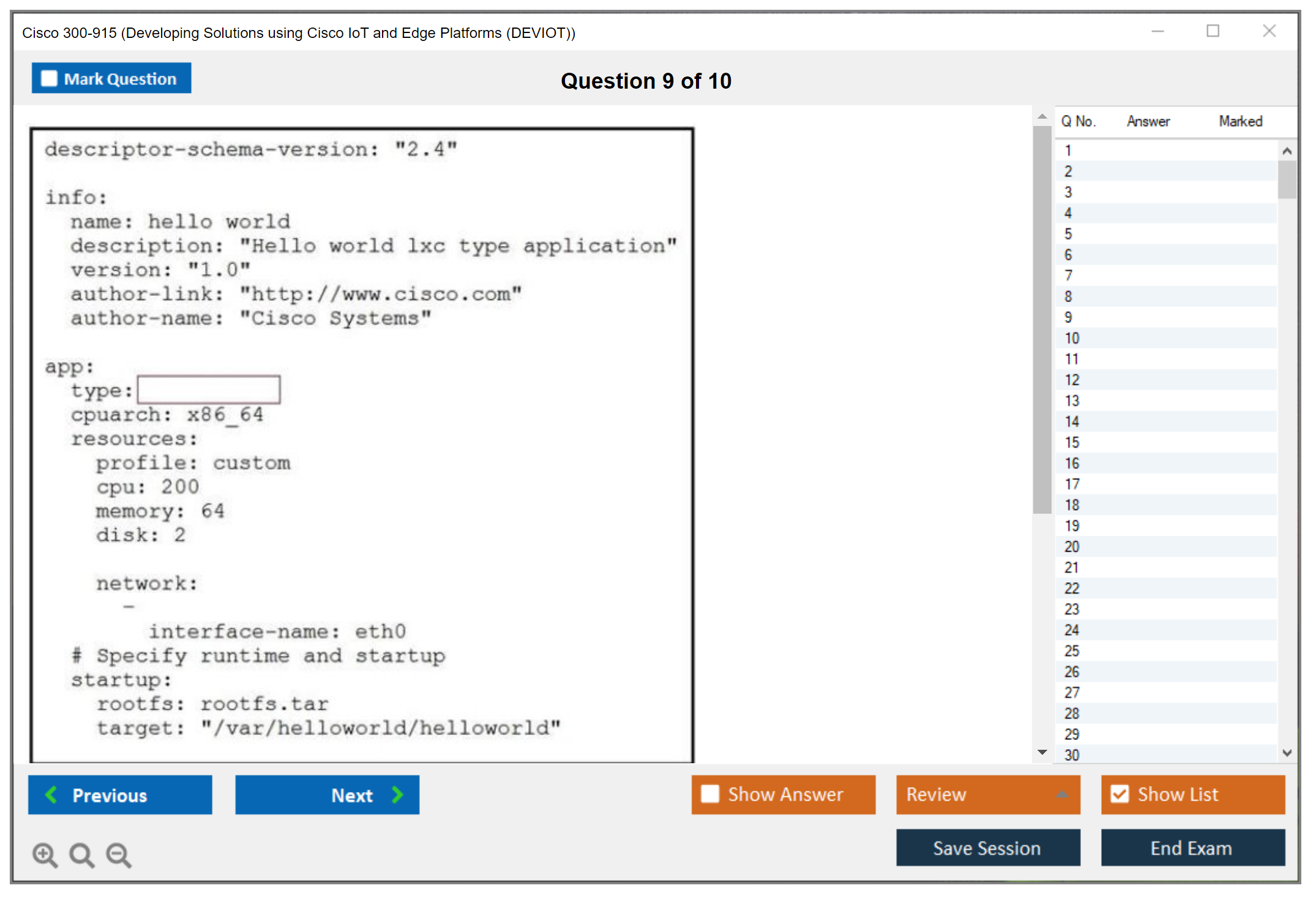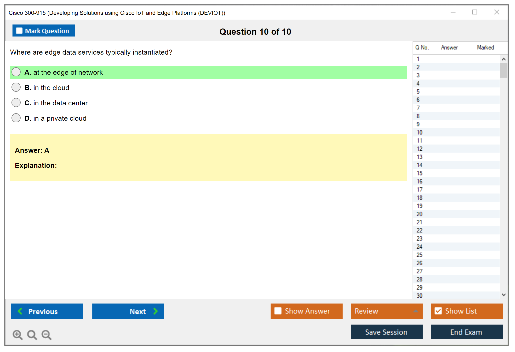 The Cisco 300-915 exam is part of the Cisco Certified DevNet Specialist certification track and focuses on developing solutions using Cisco IoT and edge platforms.