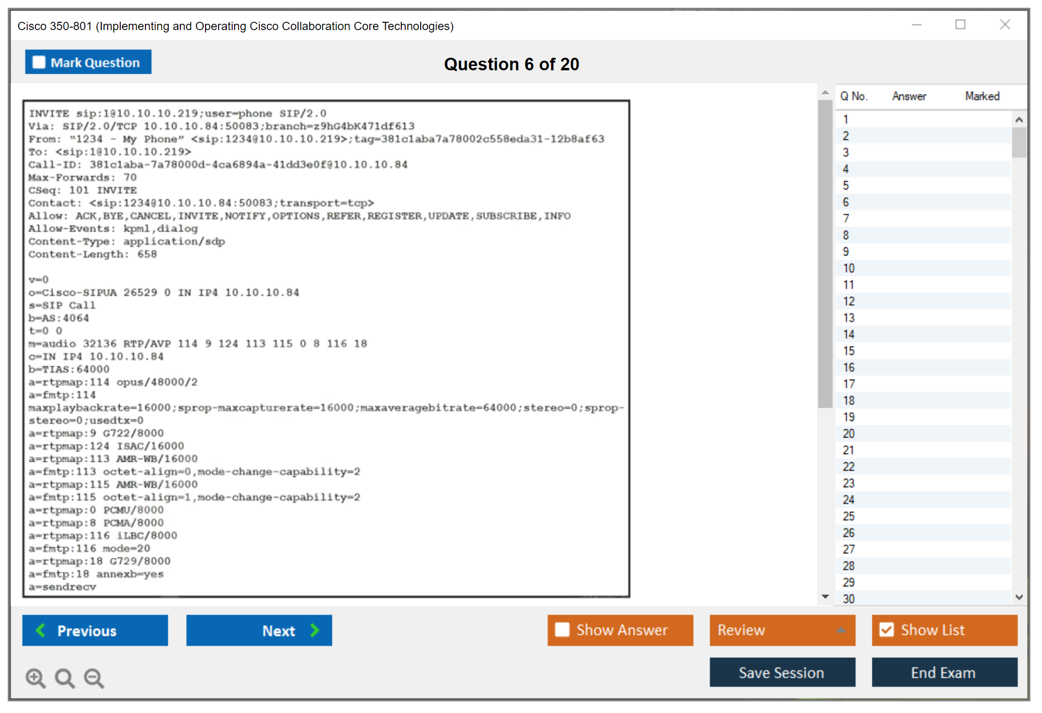 What are the Number of Questions Asked in Cisco 350-801 Exam?