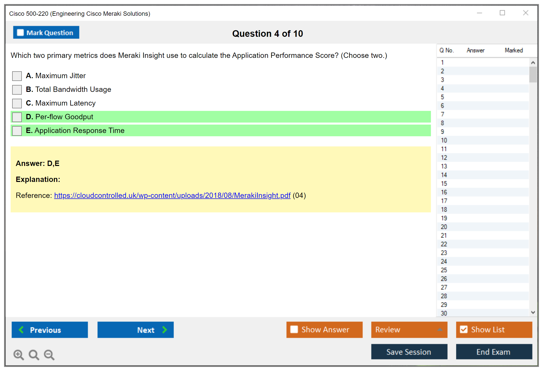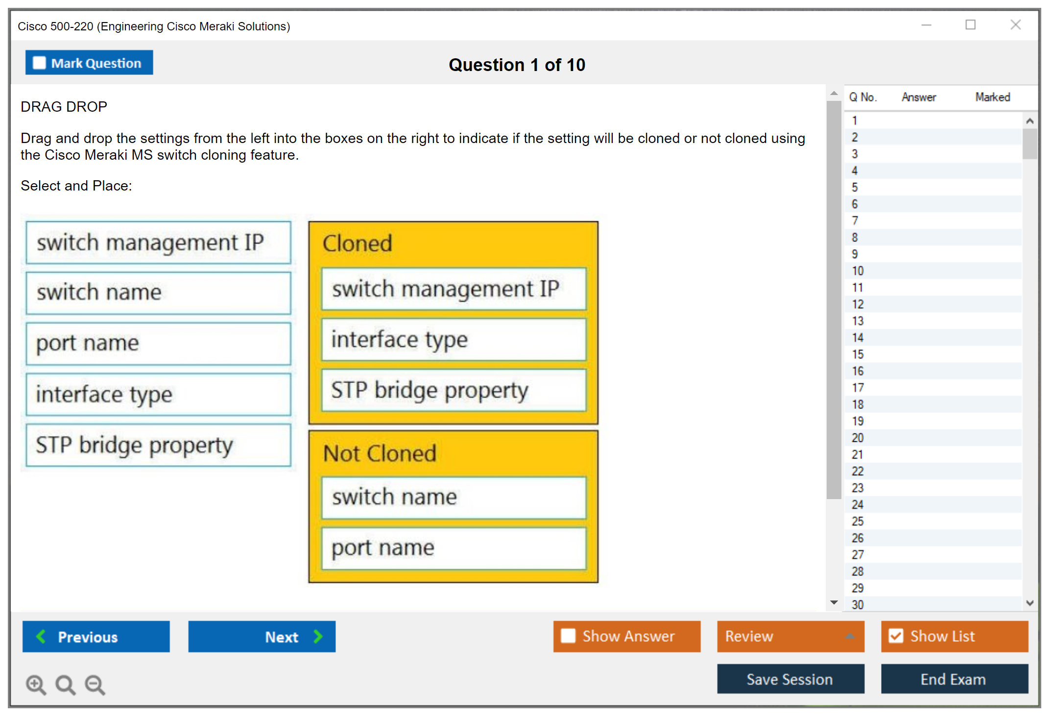 The Cisco 500-220 (Engineering Cisco Meraki Solutions (ECMS) v2.2) Exam is designed to test a candidate's knowledge and skills in deploying, configuring, and troubleshooting Cisco Meraki solutions.