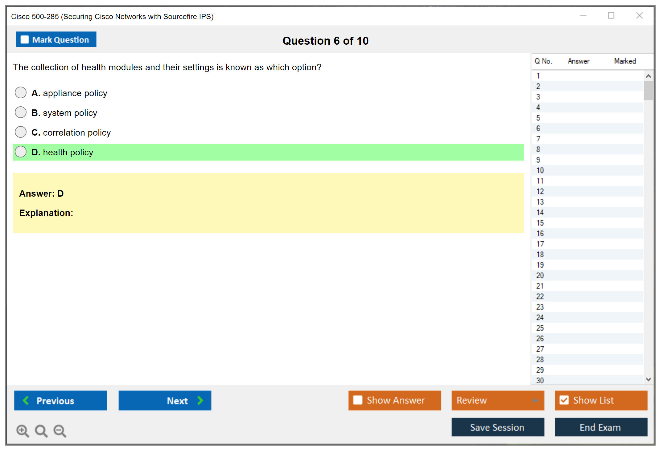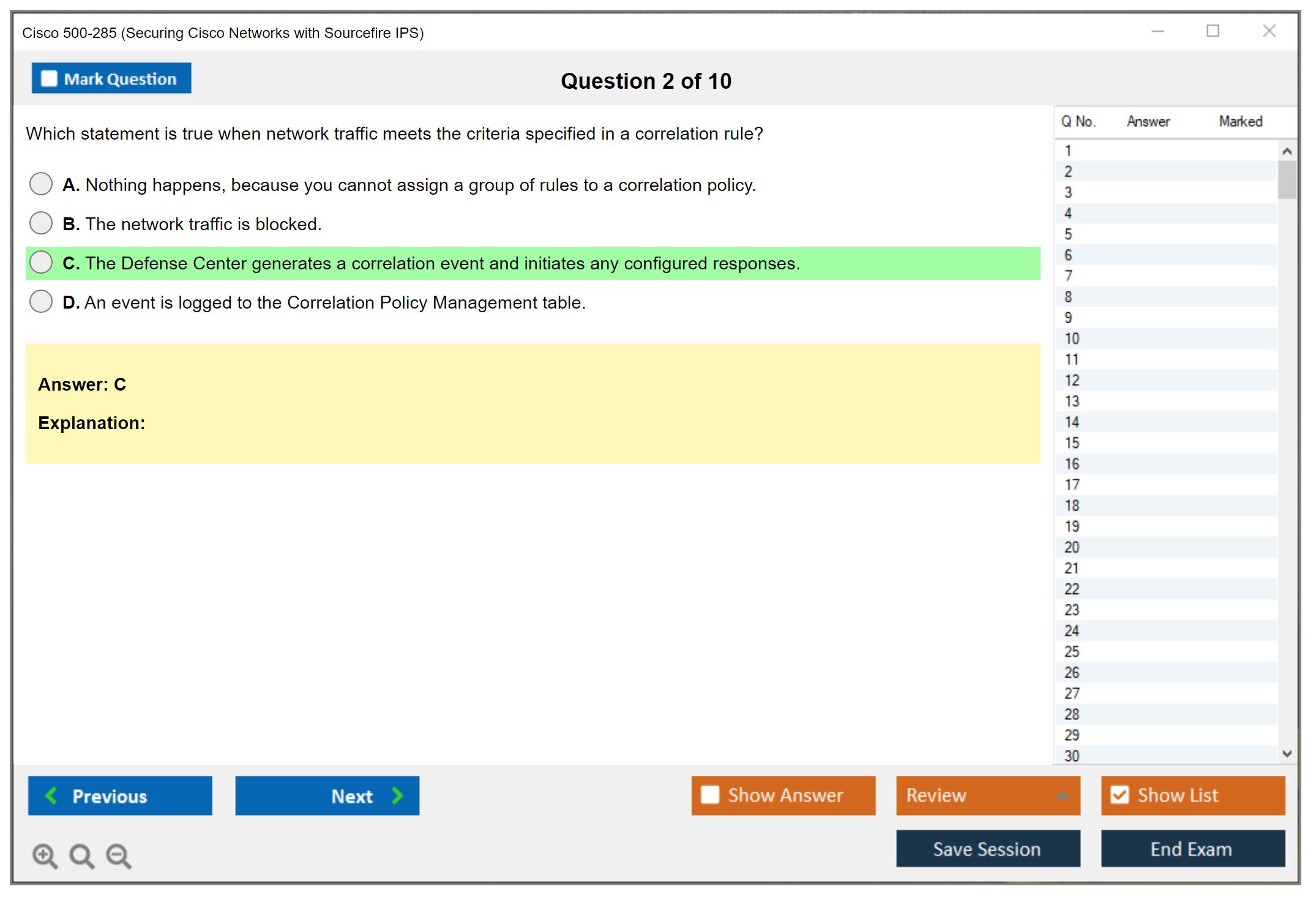The Cisco 500-285 exam is a specialized certification exam that focuses on securing networks using the Sourcefire Intrusion Prevention System (IPS). It is intended for network security professionals who are responsible for implementing and managing Sourcefire IPS solutions.