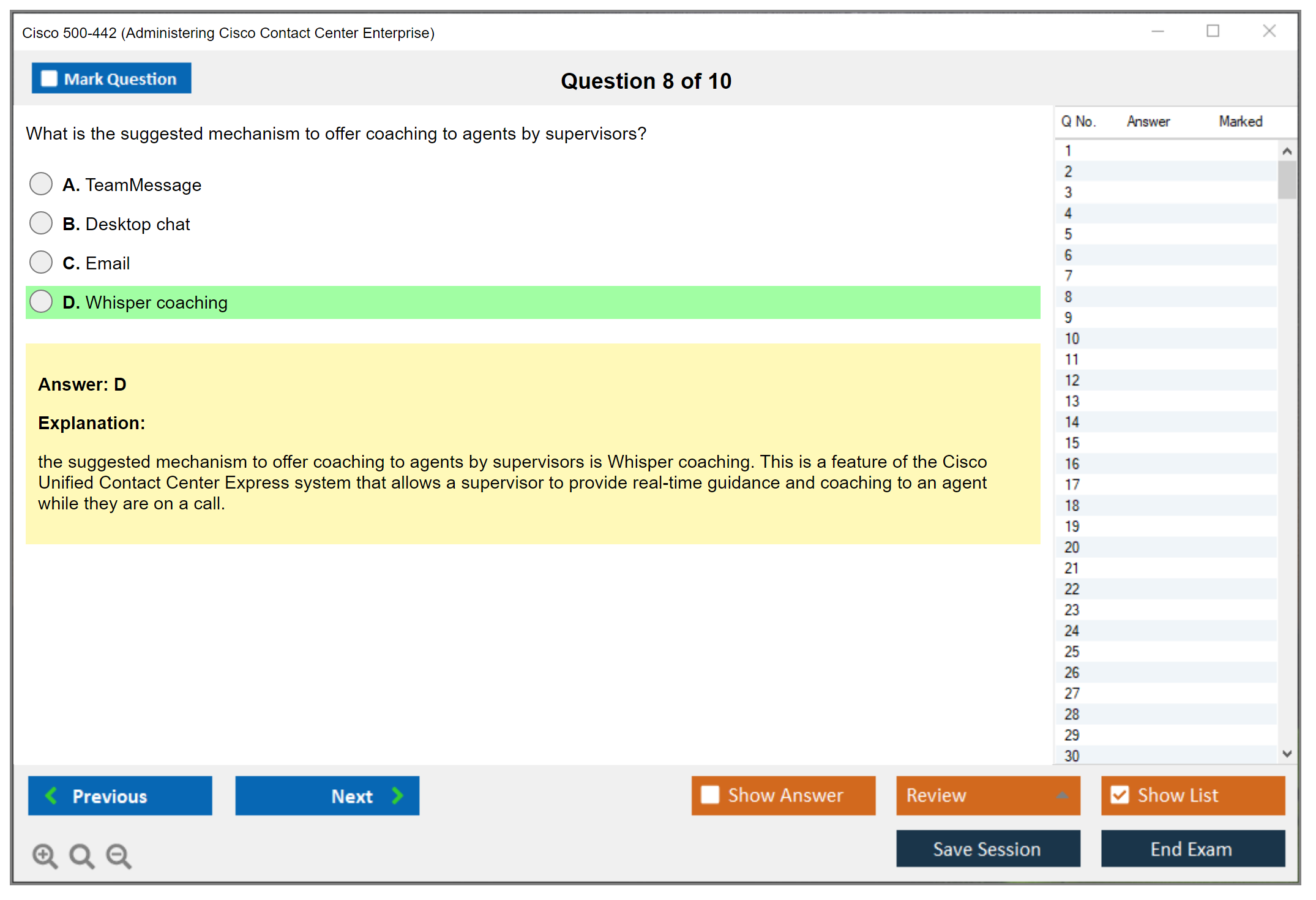 The Cisco 500-442 exam is part of the Cisco Contact Center Enterprise certification track, which includes other exams and certifications focused on designing, implementing, and managing Cisco Contact Center solutions.