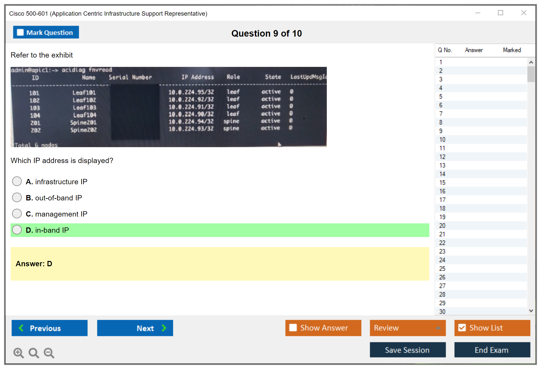 The Cisco 500-601 (Application Centric Infrastructure Support Representative) Exam is designed to test the knowledge and skills of individuals in supporting and troubleshooting Cisco Application Centric Infrastructure (ACI) environments.