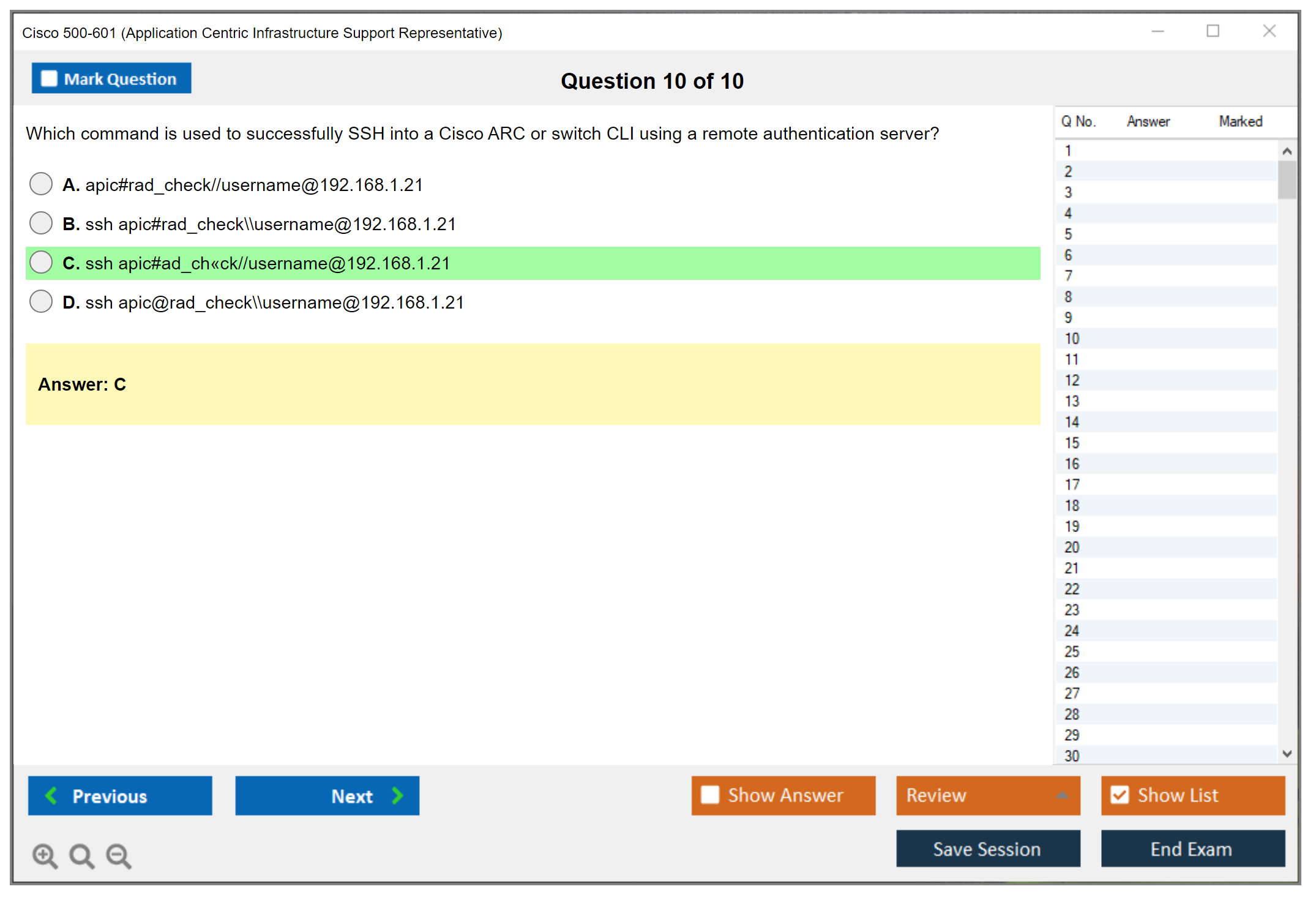 The question format of the Cisco 500-601 Exam includes multiple-choice, multiple-answer, drag-and-drop, and simulation-based questions.