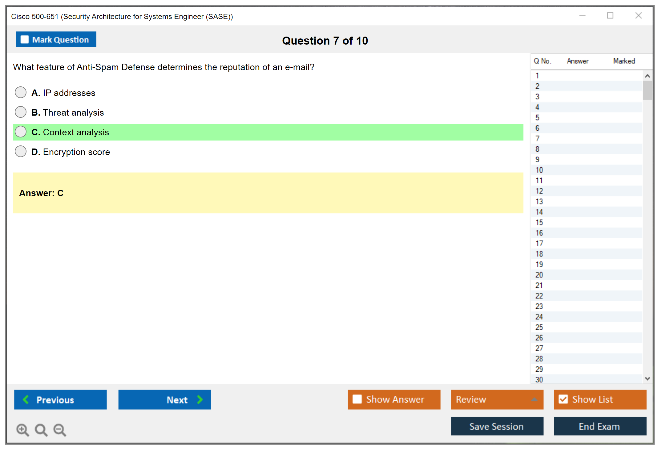 The Cisco 500-651 (Security Architecture for Systems Engineer (SASE)) exam is designed to validate the knowledge and skills of systems engineers in the field of security architecture. It covers various aspects of designing and implementing secure network solutions.