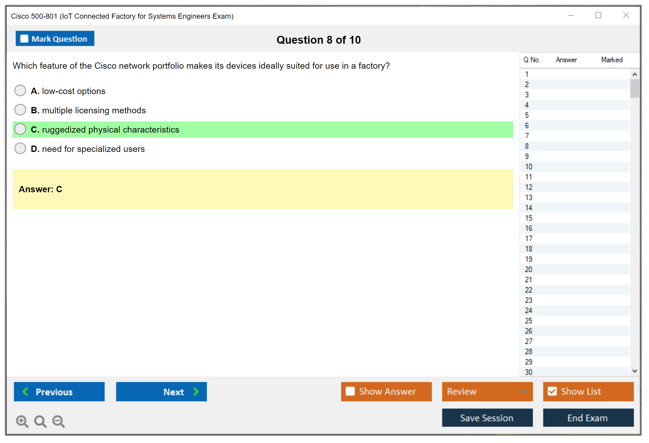 The Cisco 500-801 (IoT Connected Factory for Systems Engineers Exam) is a certification exam designed to validate the knowledge and skills of systems engineers in implementing IoT solutions in a connected factory environment.