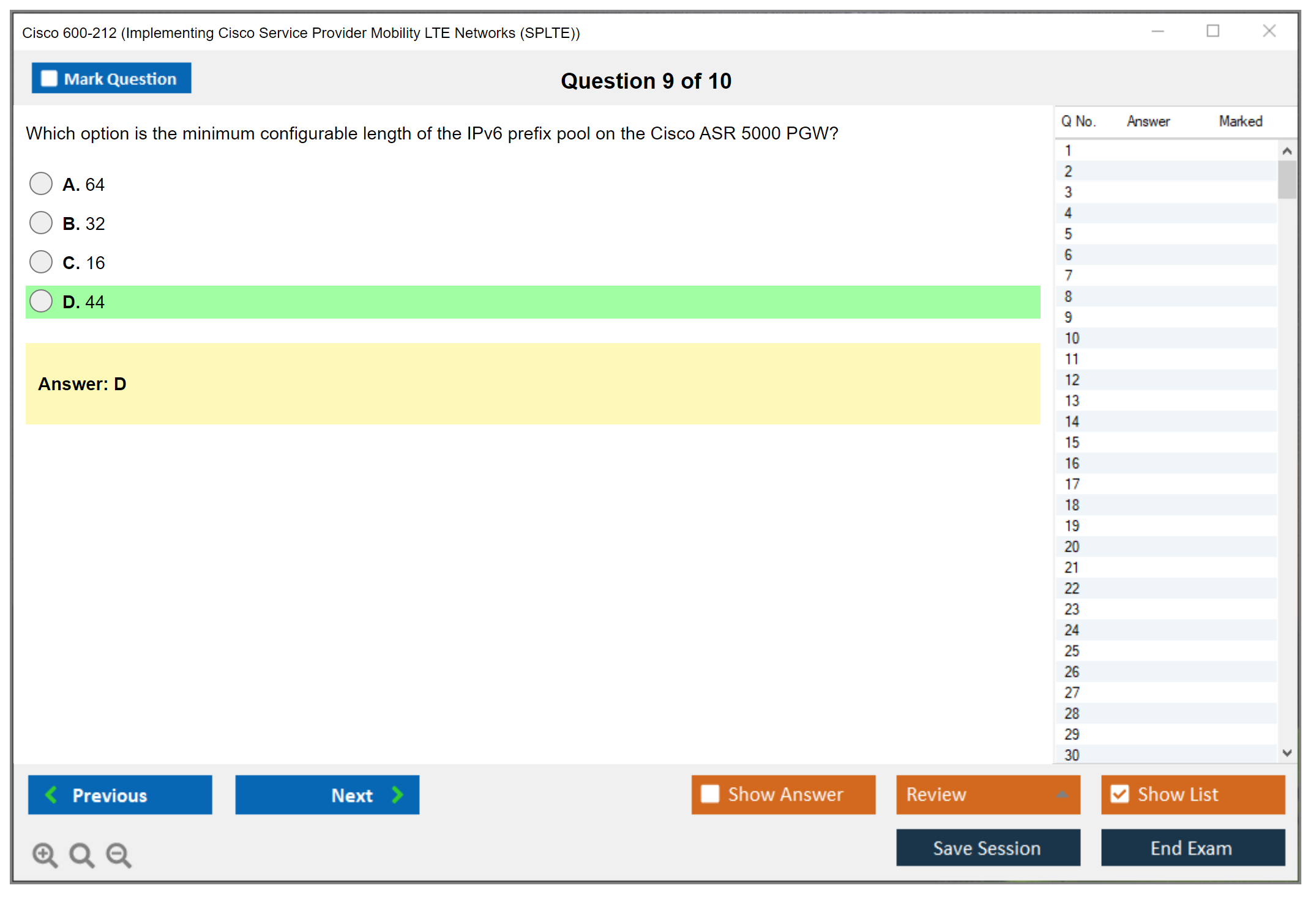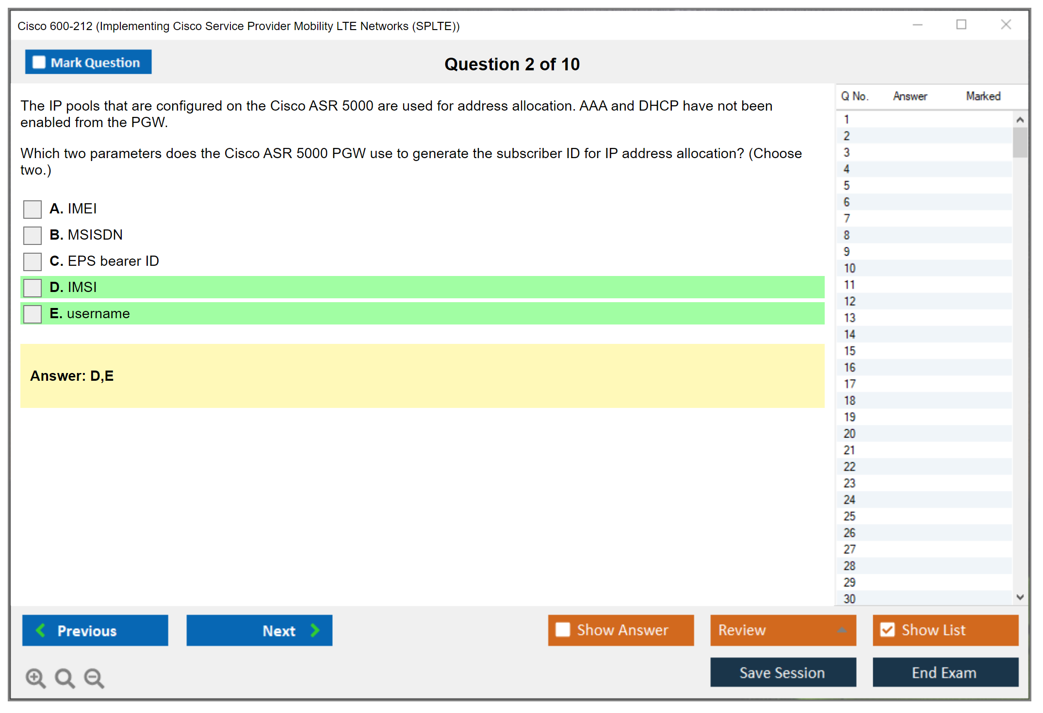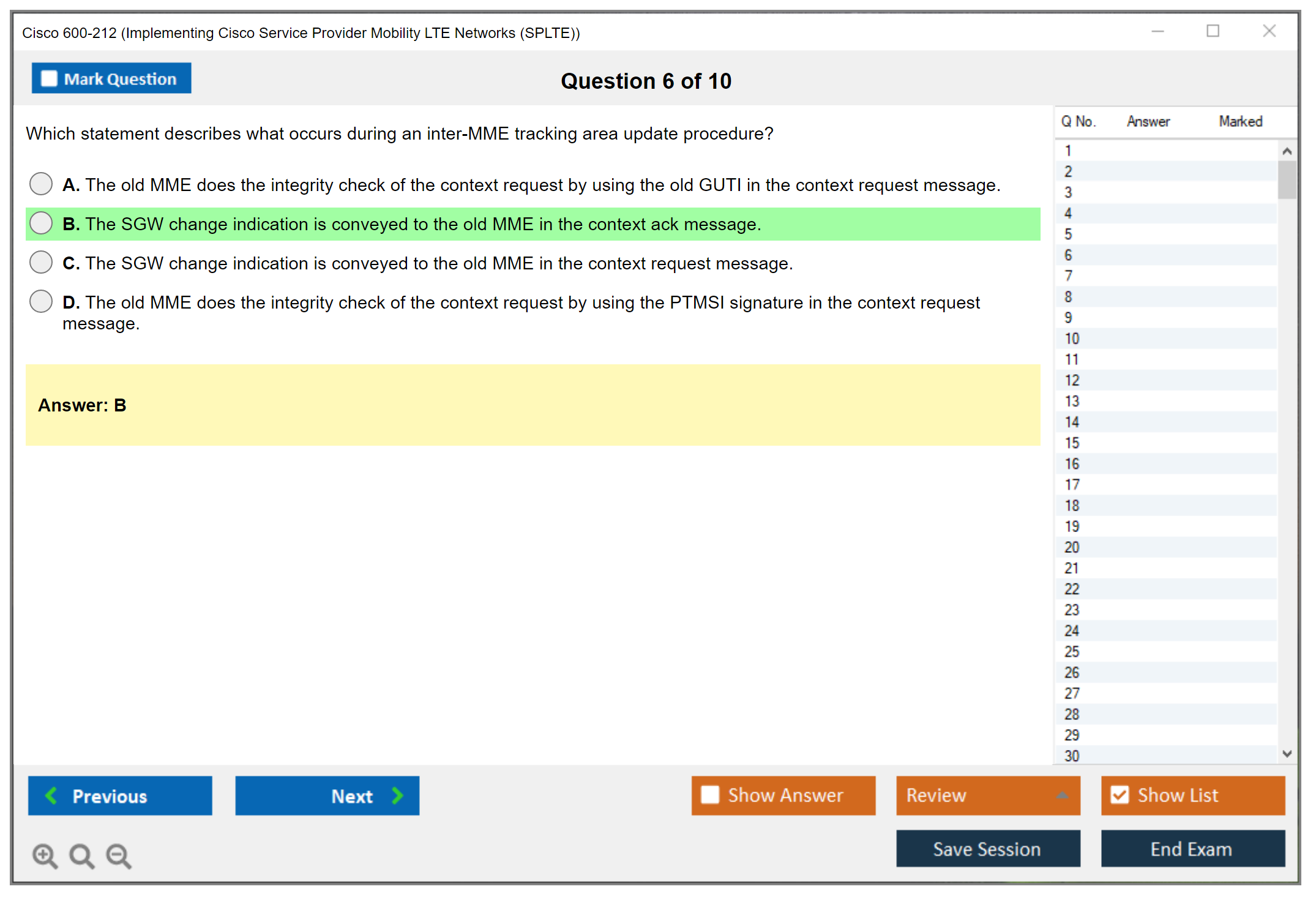 Note: Cisco 600-212 (Implementing Cisco Service Provider Mobility LTE Networks (SPLTE)) will not receive any new updates.