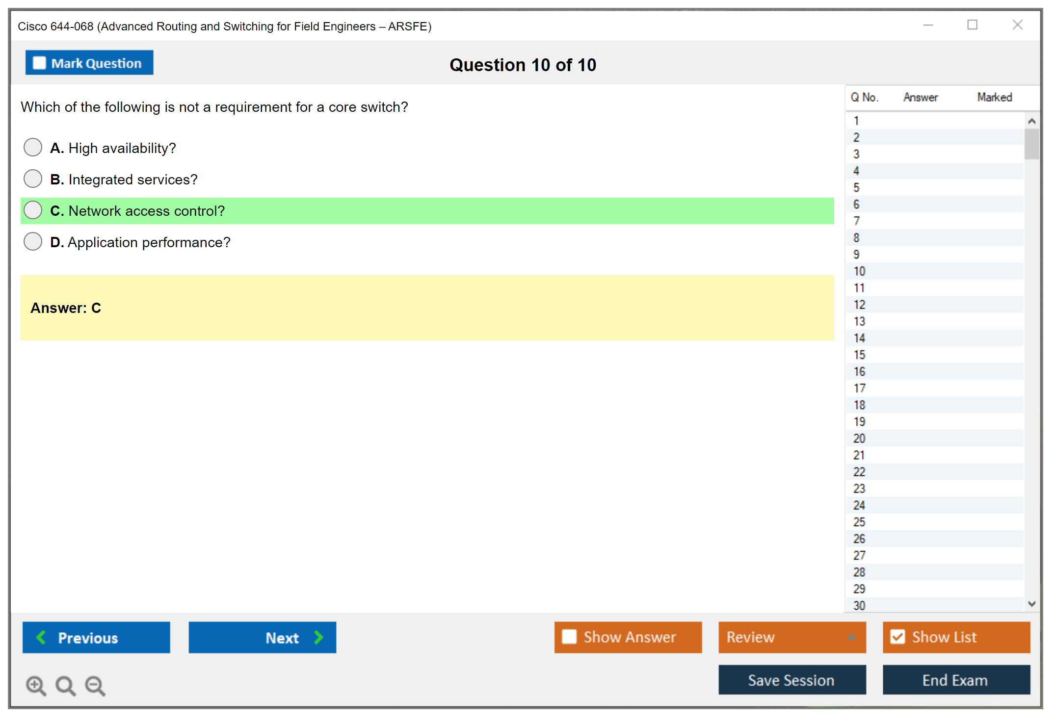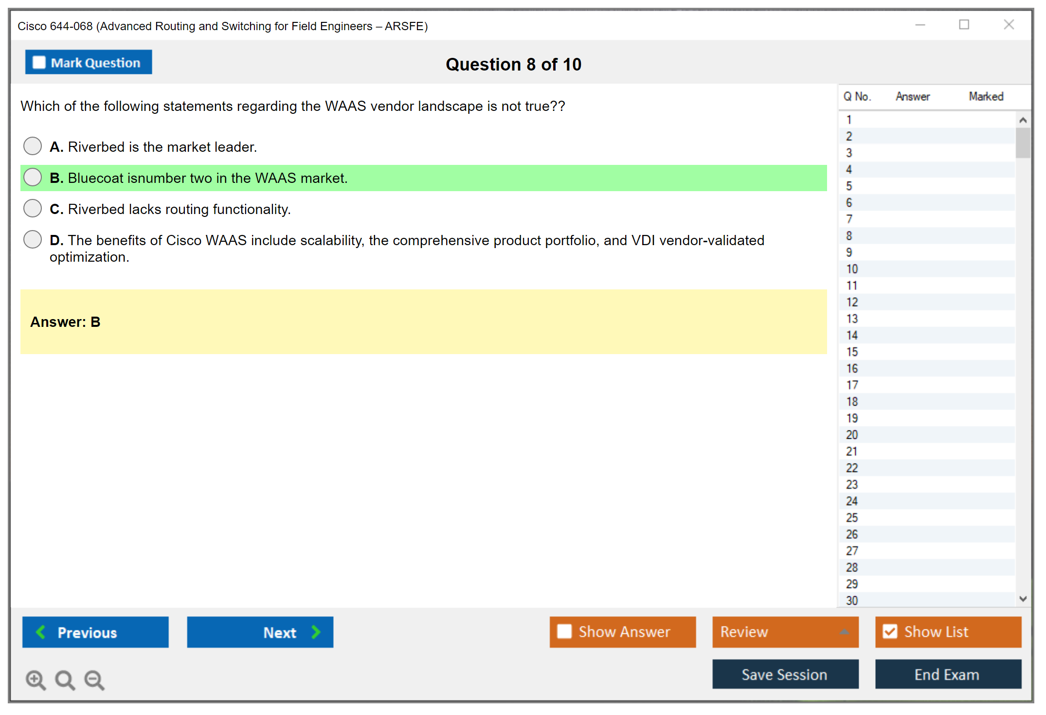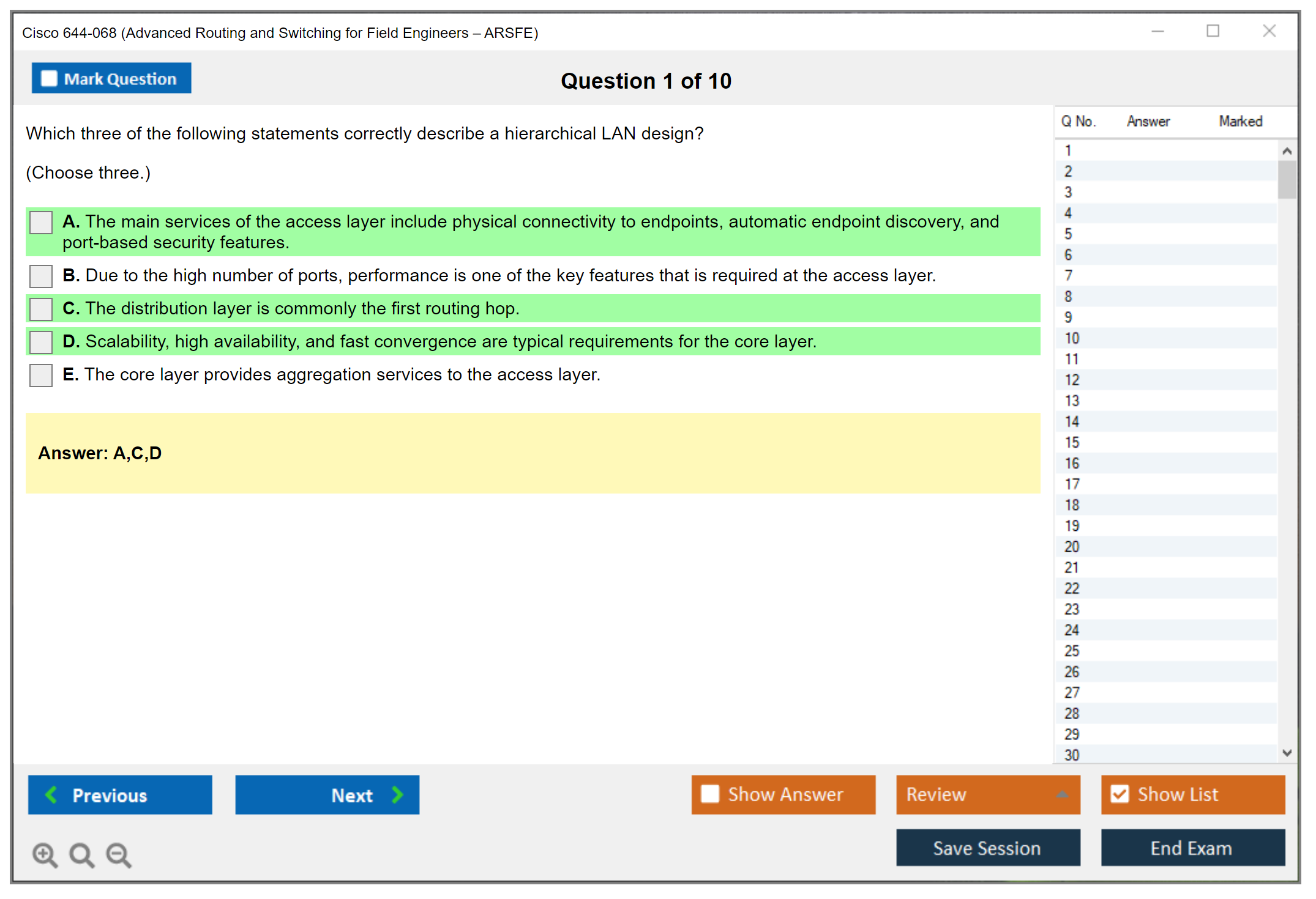 The Cisco 644-068 (Advanced Routing and Switching for Field Engineers – ARSFE) exam is designed to assess the knowledge and skills of field engineers in advanced routing and switching technologies. This certification is aimed at validating the expertise required to implement, configure, and troubleshoot complex network infrastructures.