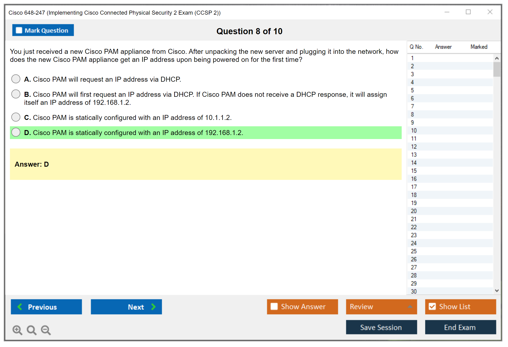 The Cisco 648-247 Exam is part of the Cisco certification track for physical security. Successful completion of this exam can lead to advanced certifications in the field of network security and physical security.