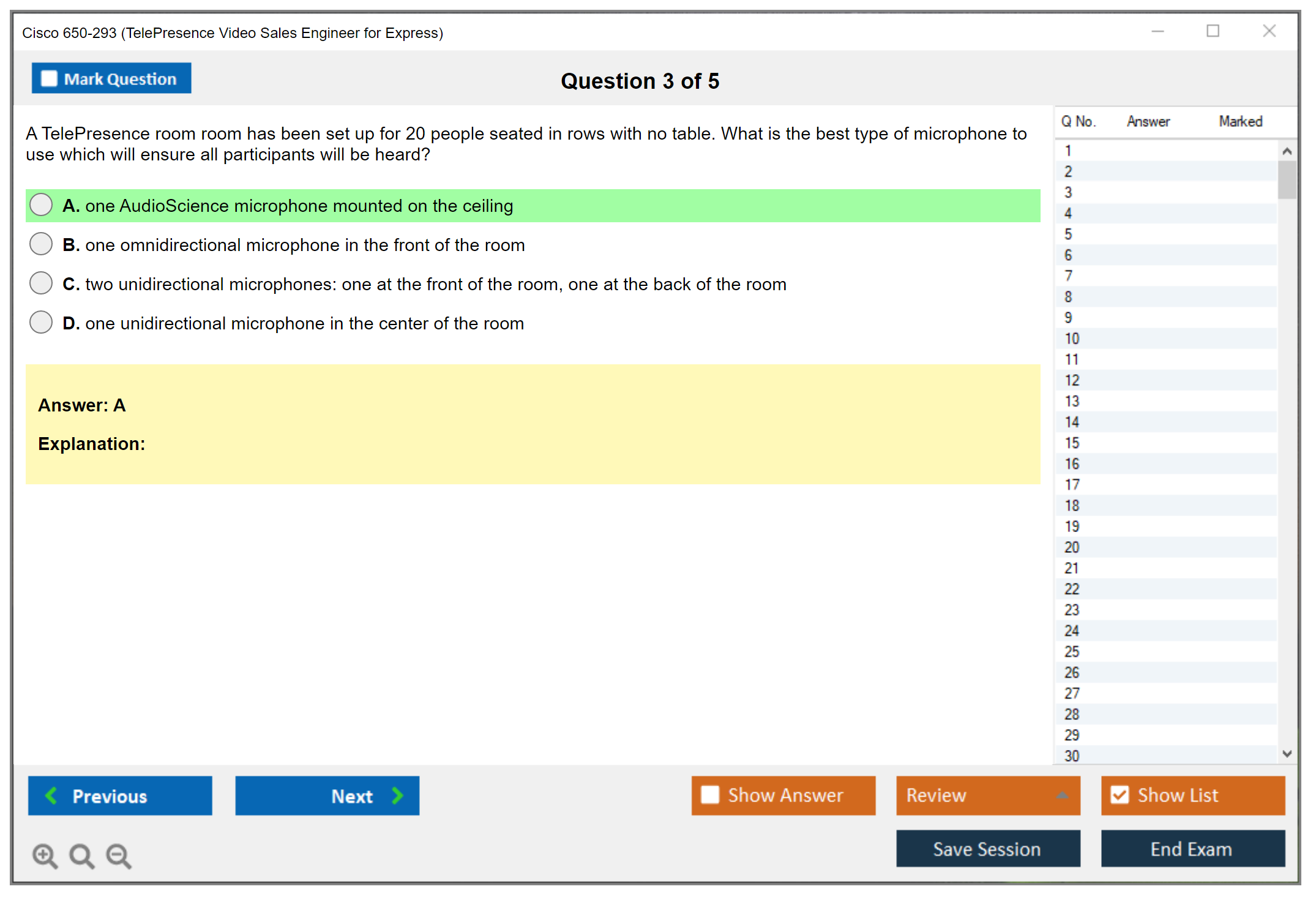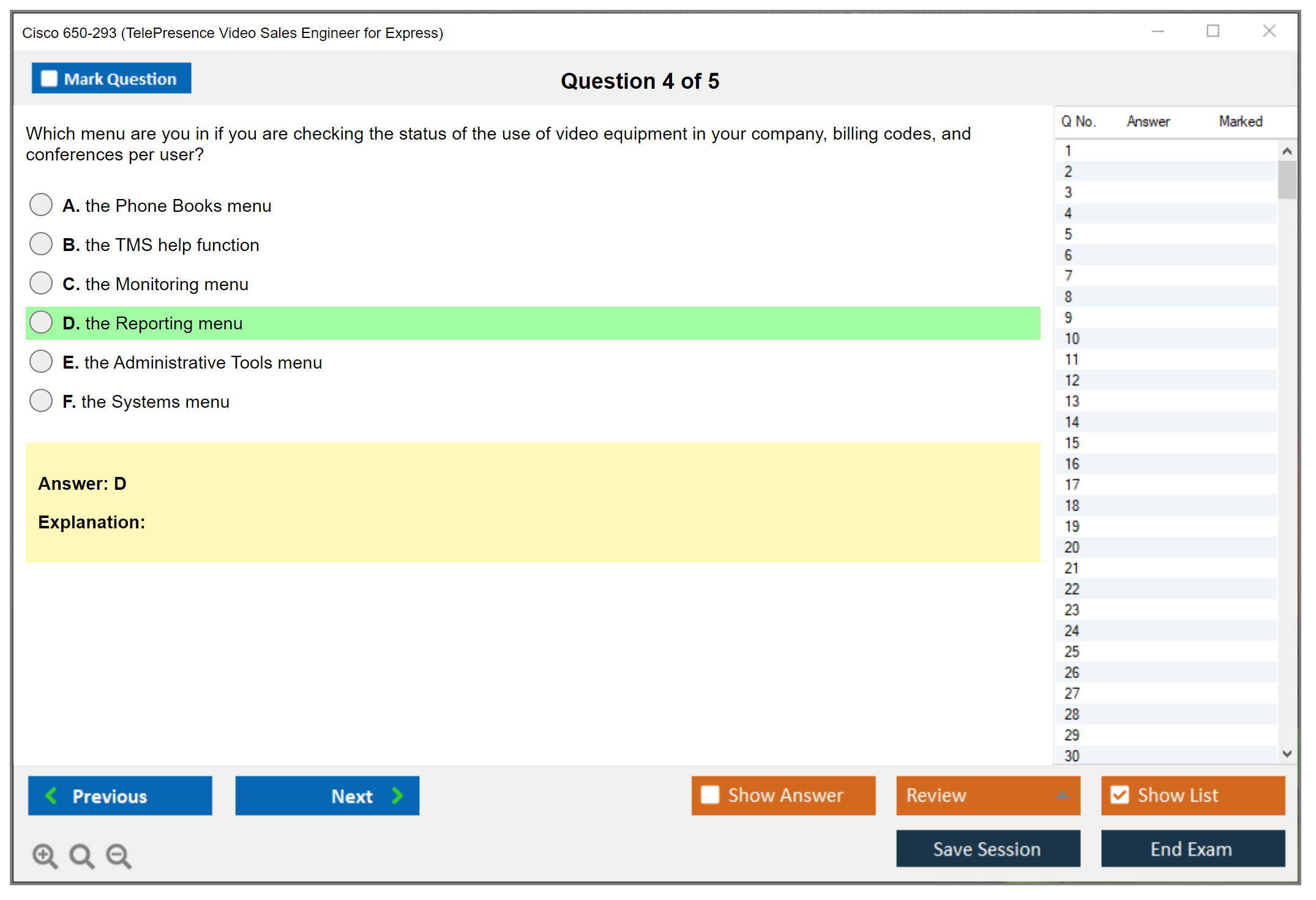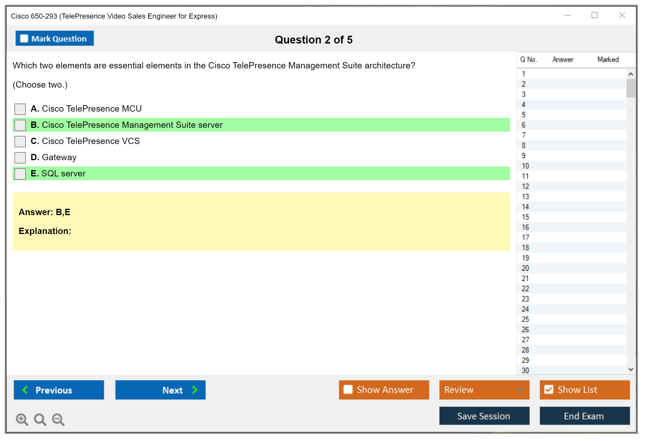 The Cisco 650-293 (TelePresence Video Sales Engineer for Express) Exam is designed for sales engineers who specialize in Cisco TelePresence solutions. It evaluates the candidate's knowledge and skills in designing and selling Cisco TelePresence products and solutions.