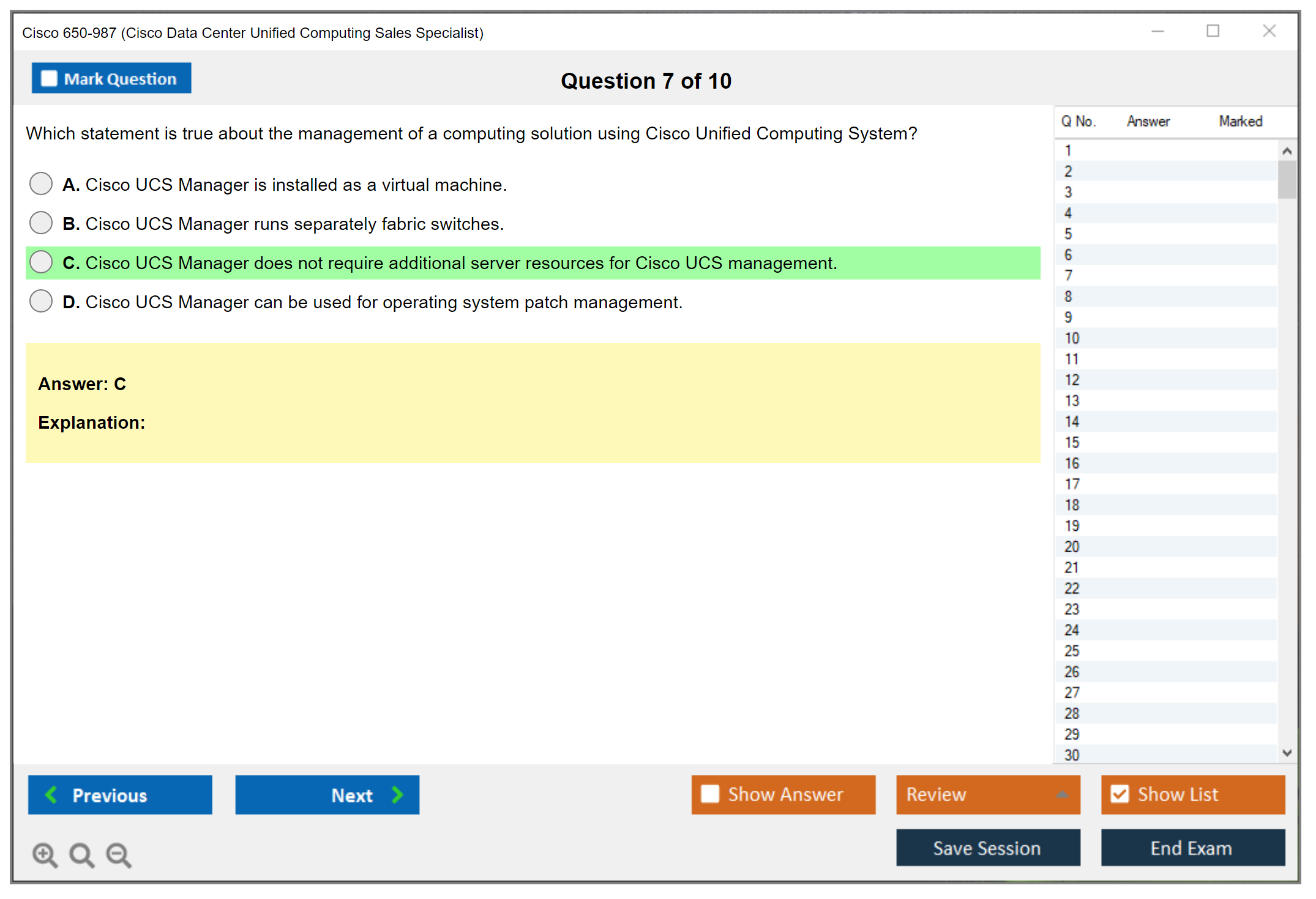 The Cisco 650-987 (Cisco Data Center Unified Computing Sales Specialist) Exam is designed for individuals who are involved in the sales and pre-sales of Cisco Unified Computing System solutions. It tests knowledge of key UCS concepts, benefits, and the ability to position and sell UCS solutions.