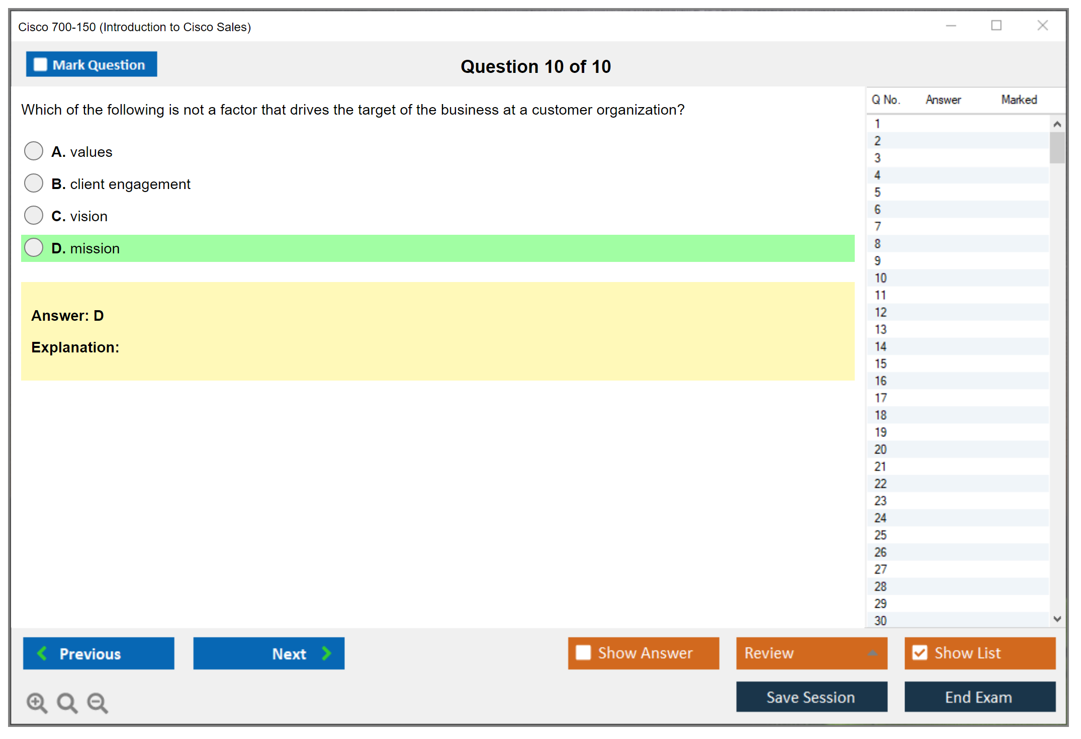 The Cisco 700-150 Exam is part of the Cisco Sales certification track and can be a stepping stone to more advanced sales and technical certifications within the Cisco ecosystem.
