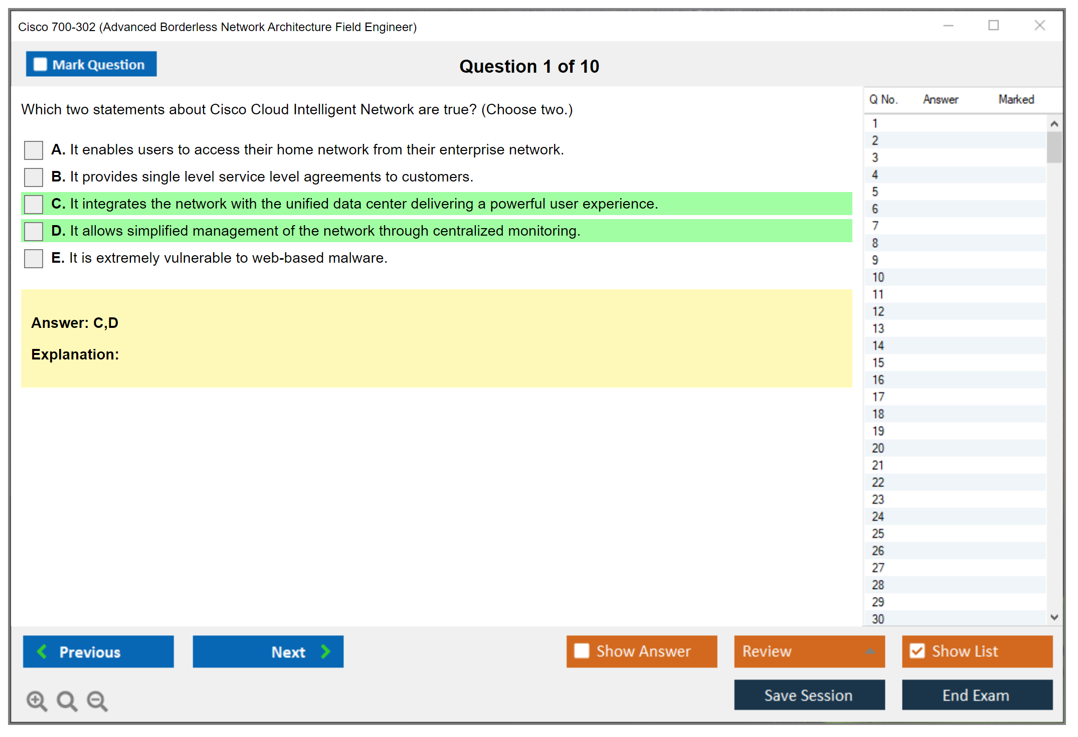 The Cisco 700-302 Exam is part of the Cisco Borderless Network Architecture certification track, which includes other certifications focused on different aspects of Cisco's network solutions.