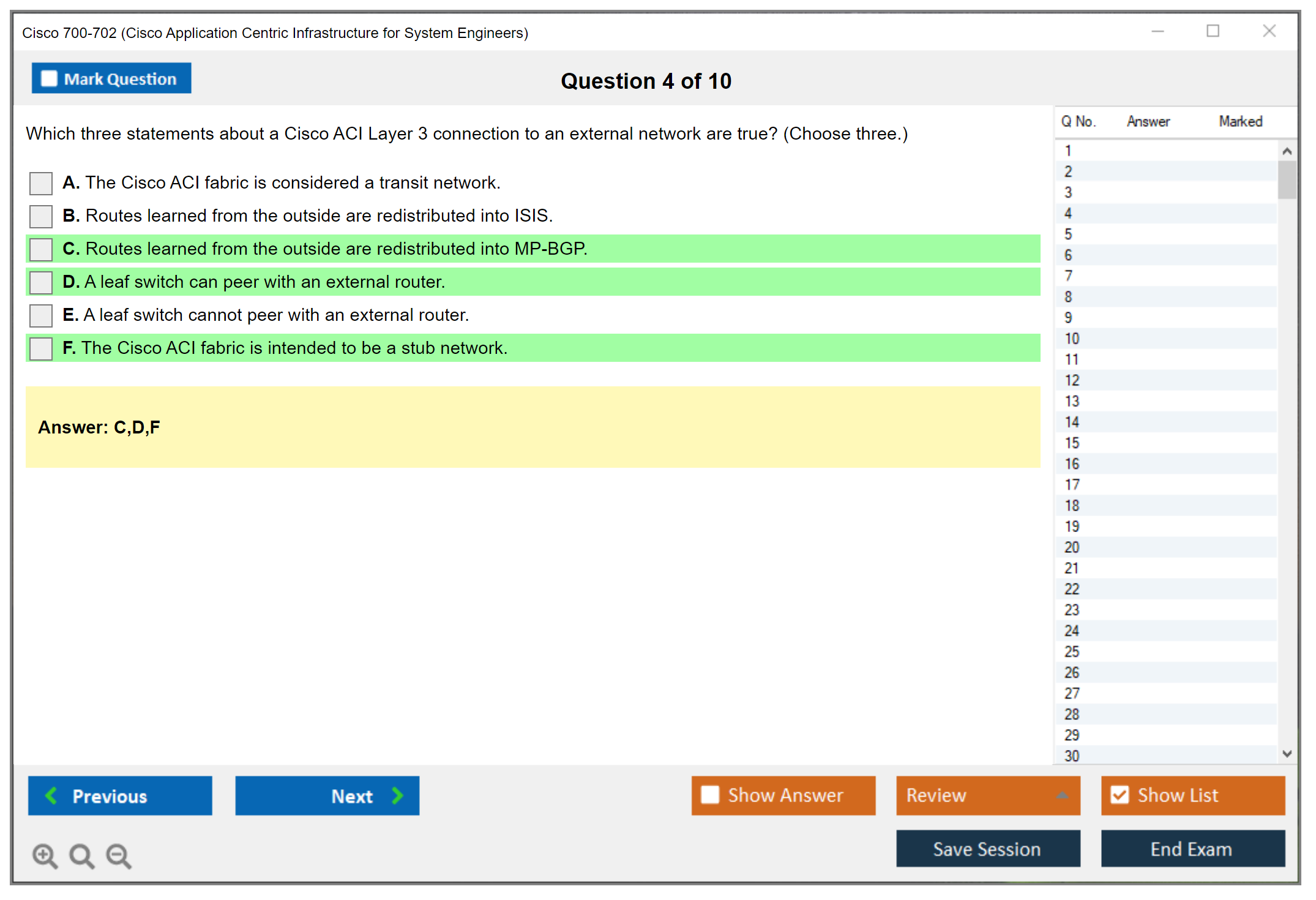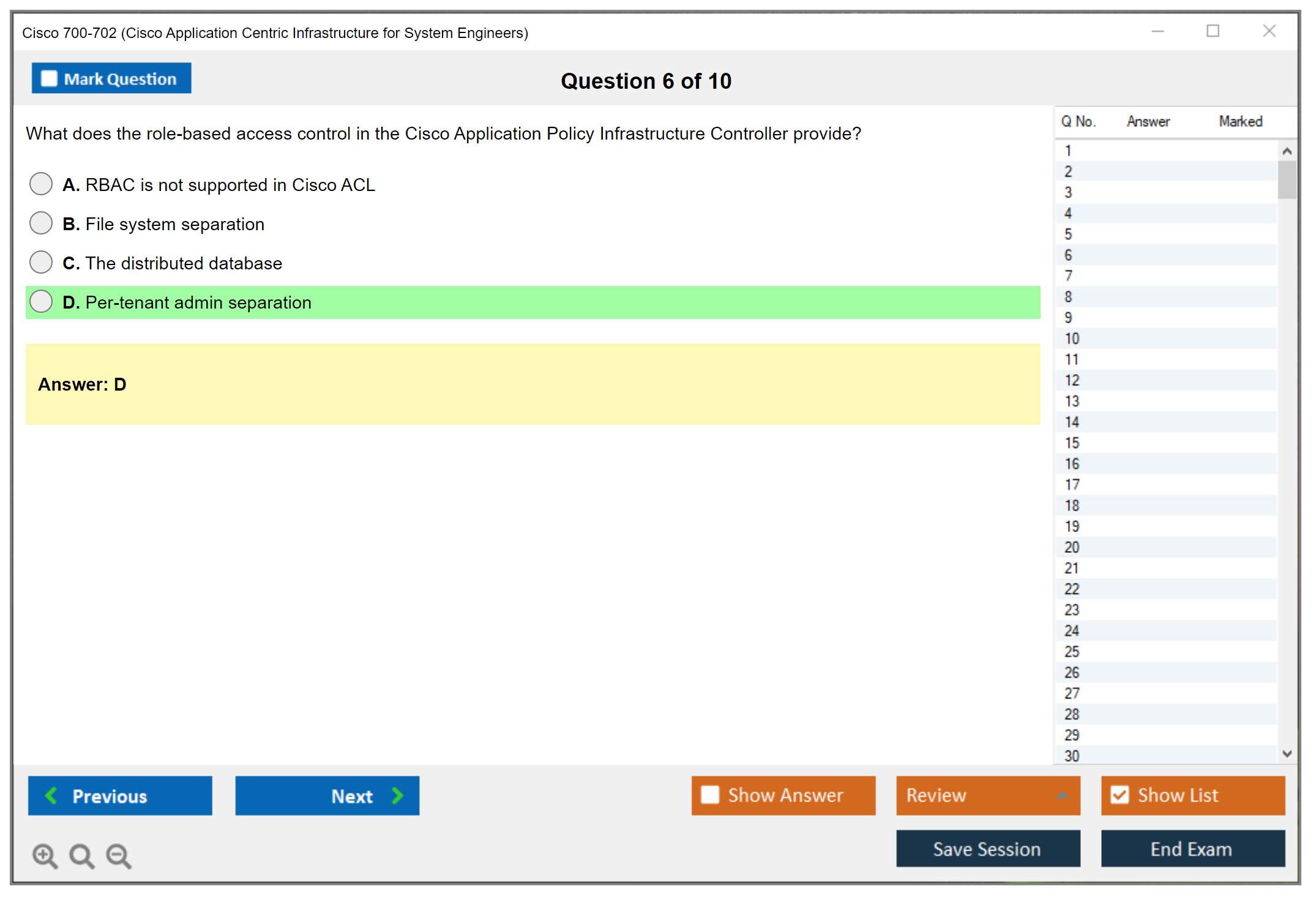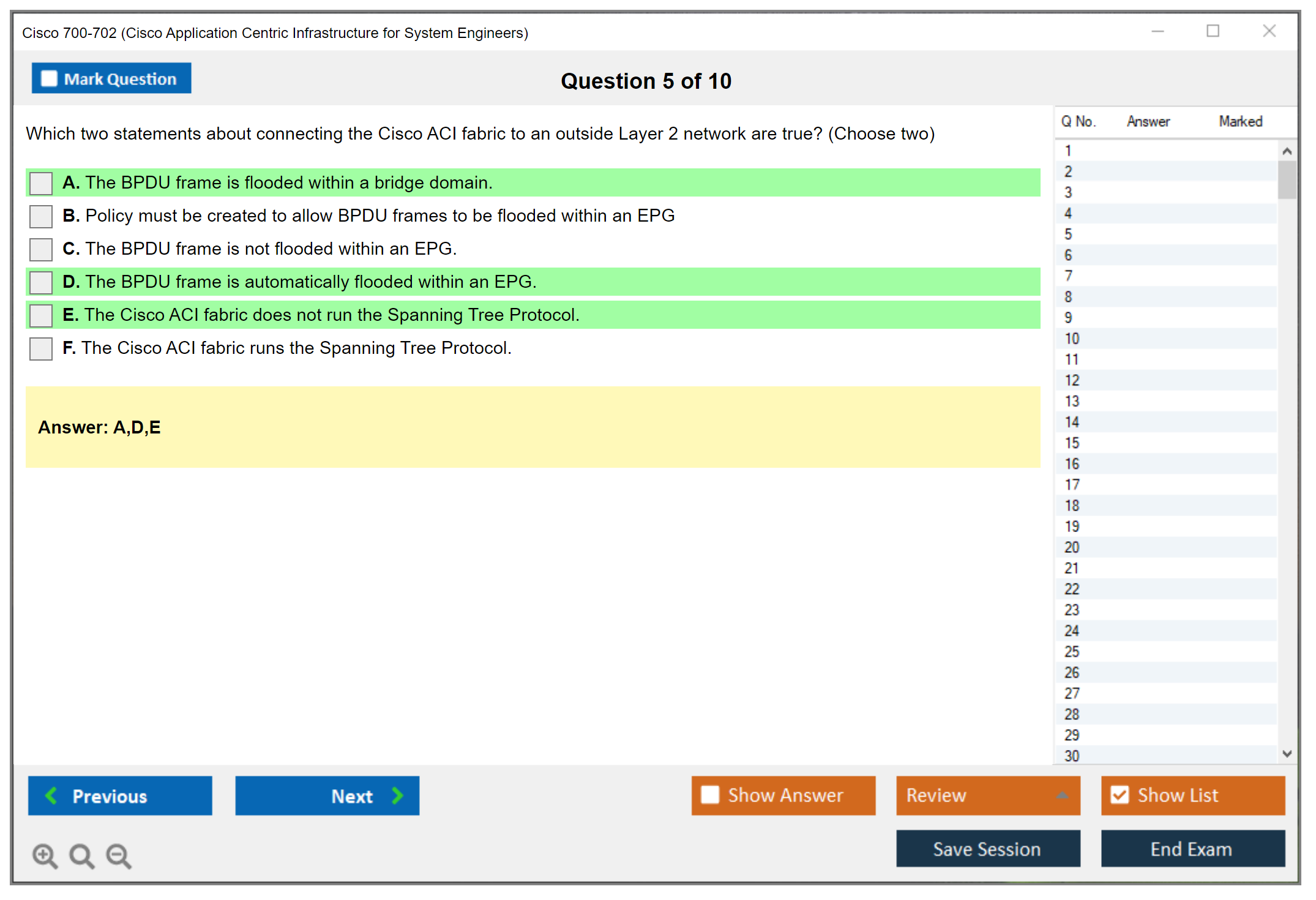 The Cisco 700-702 (Cisco Application Centric Infrastructure for System Engineers) Exam is designed to validate the knowledge and skills of system engineers in implementing and managing Cisco's Application Centric Infrastructure (ACI). This exam covers topics such as ACI architecture, configuration, and troubleshooting.