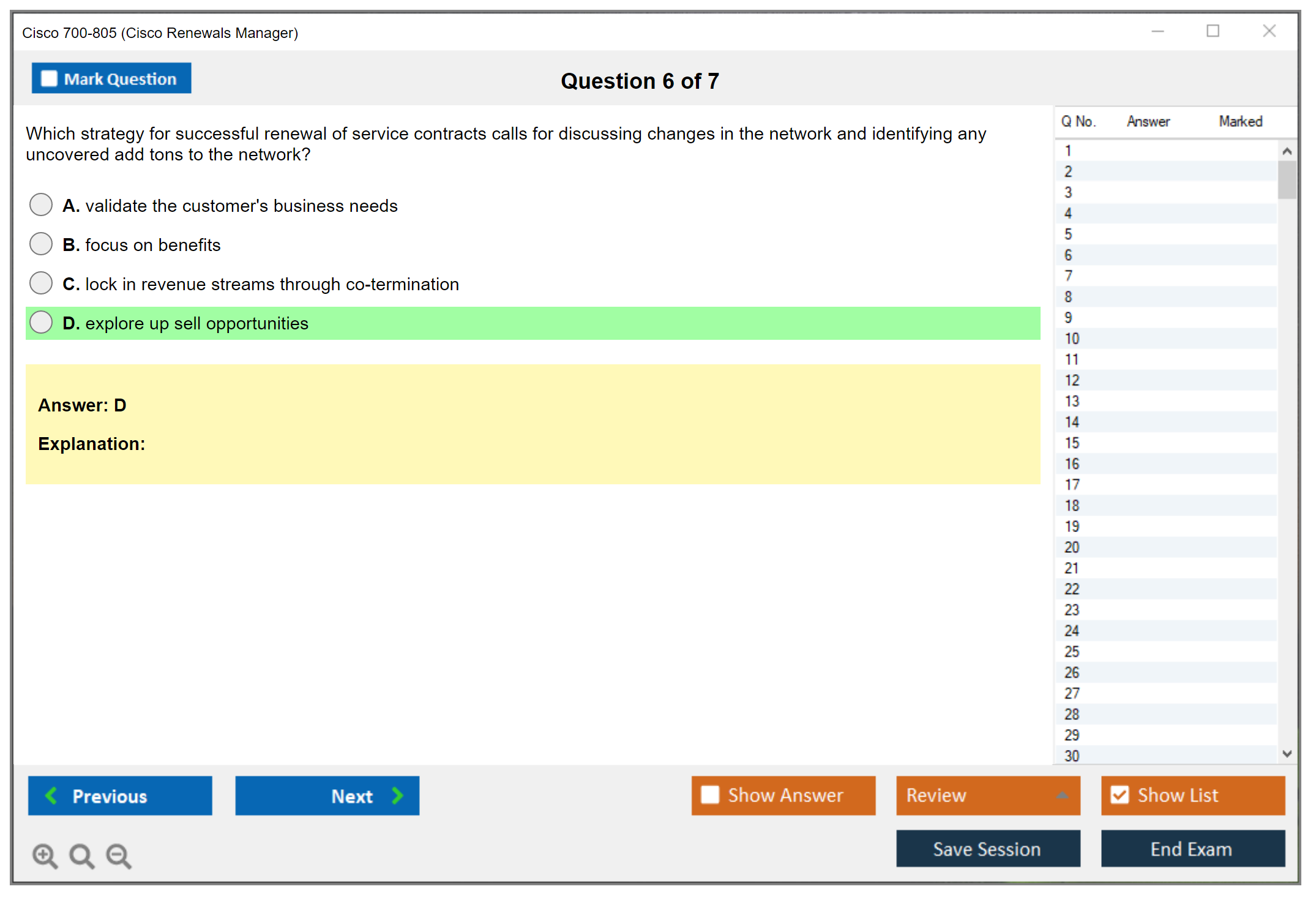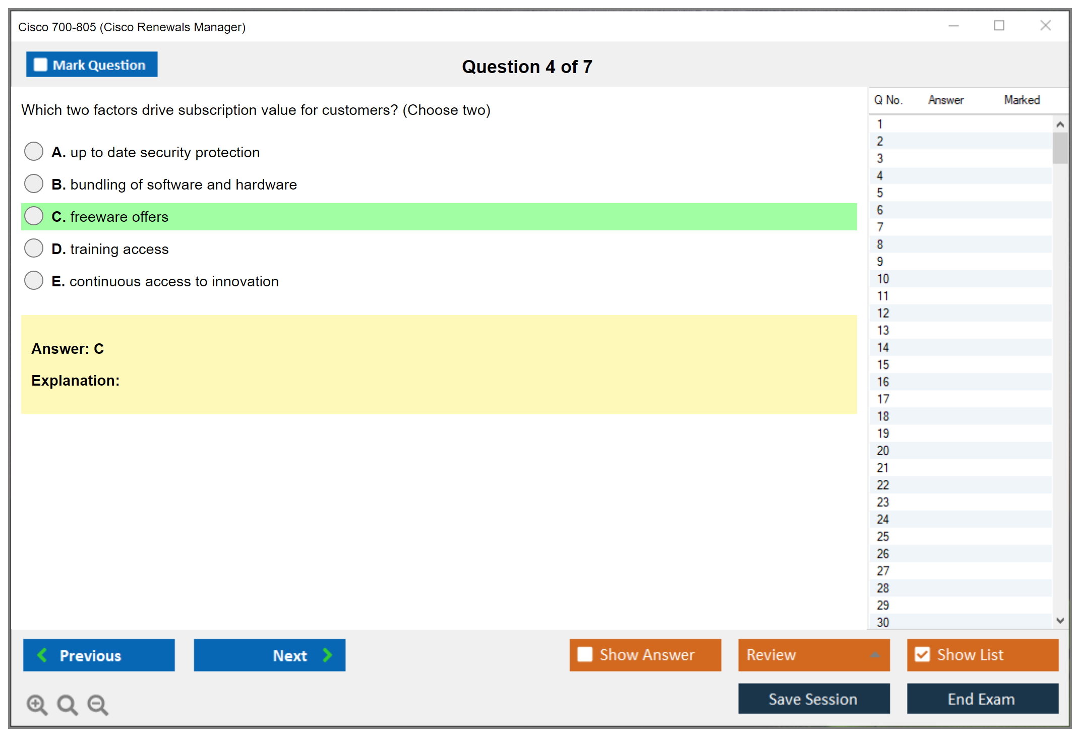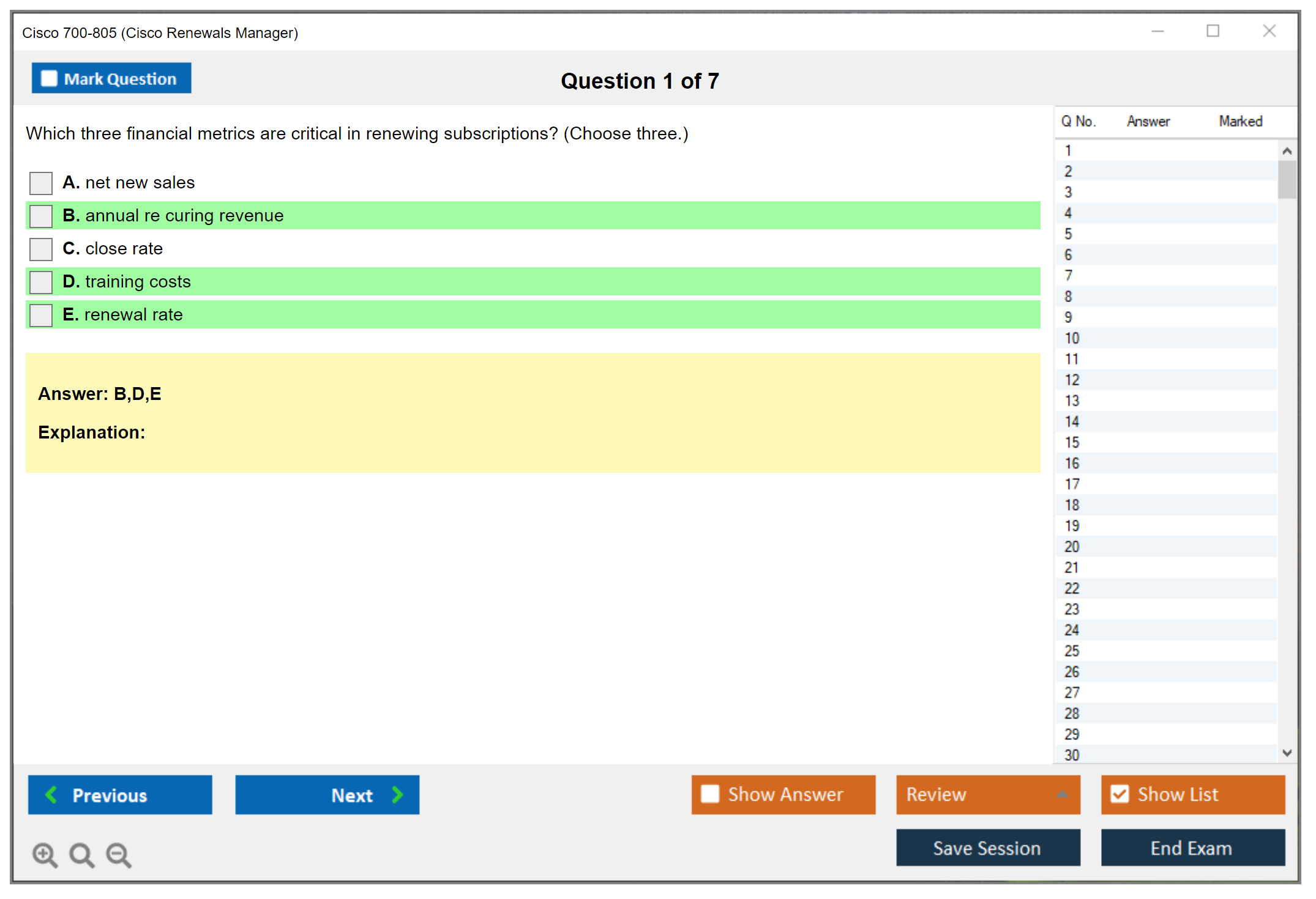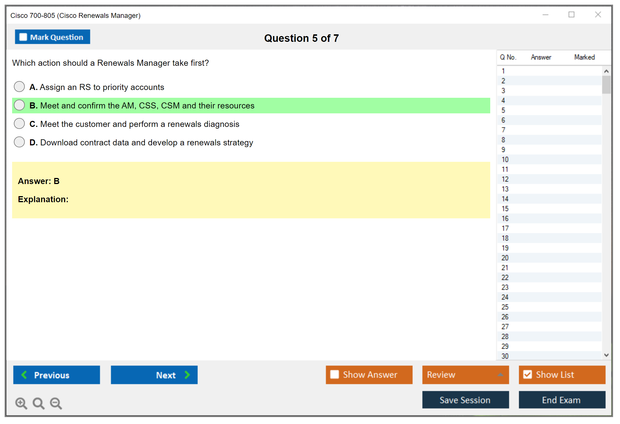 The Cisco 700-805 (Cisco Renewals Manager (700-805 CRM)) exam is designed to validate the knowledge and skills of individuals responsible for managing customer renewals. It covers topics such as customer engagement, renewal management processes, and the use of Cisco tools and resources.