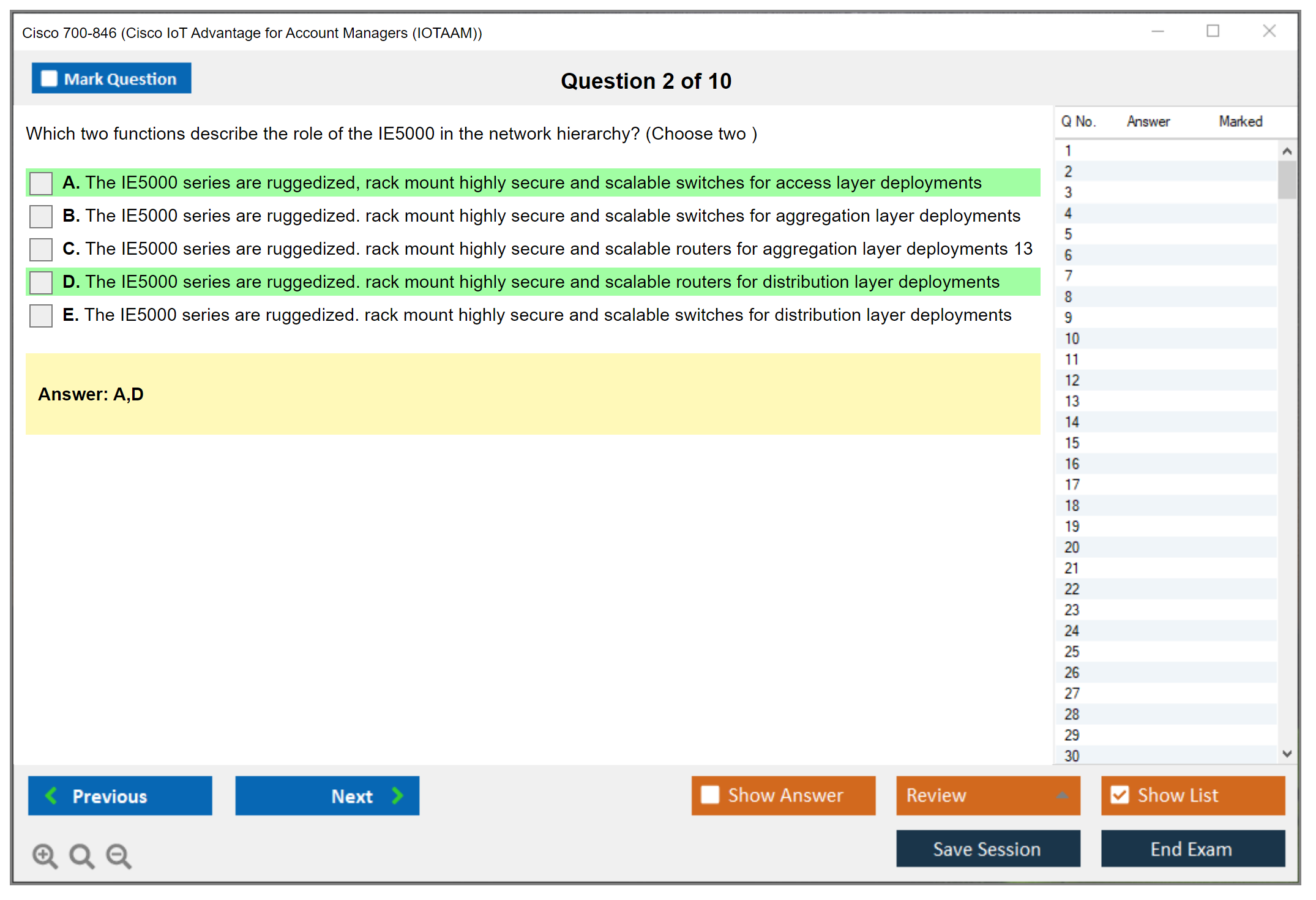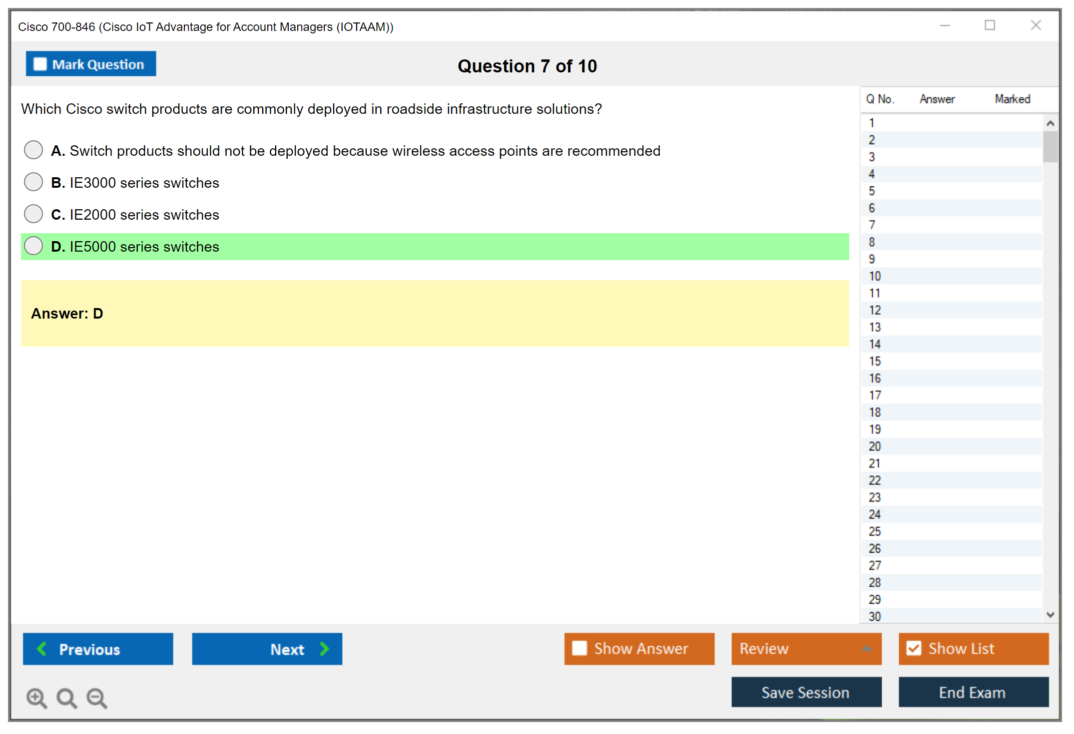 The Cisco 700-846 exam, also known as Cisco IoT Advantage for Account Managers (IOTAAM), is intended to assess the ability of account managers to effectively sell and position Cisco IoT solutions to customers. The exam covers various aspects of Cisco IoT products, solutions, and their applications in different industries.