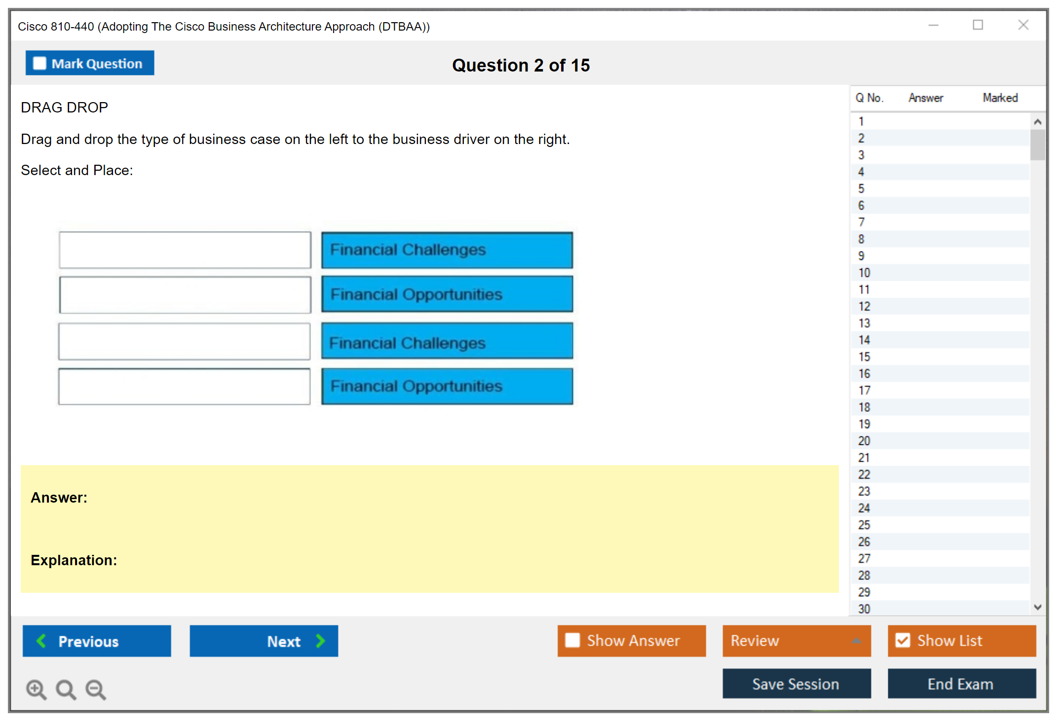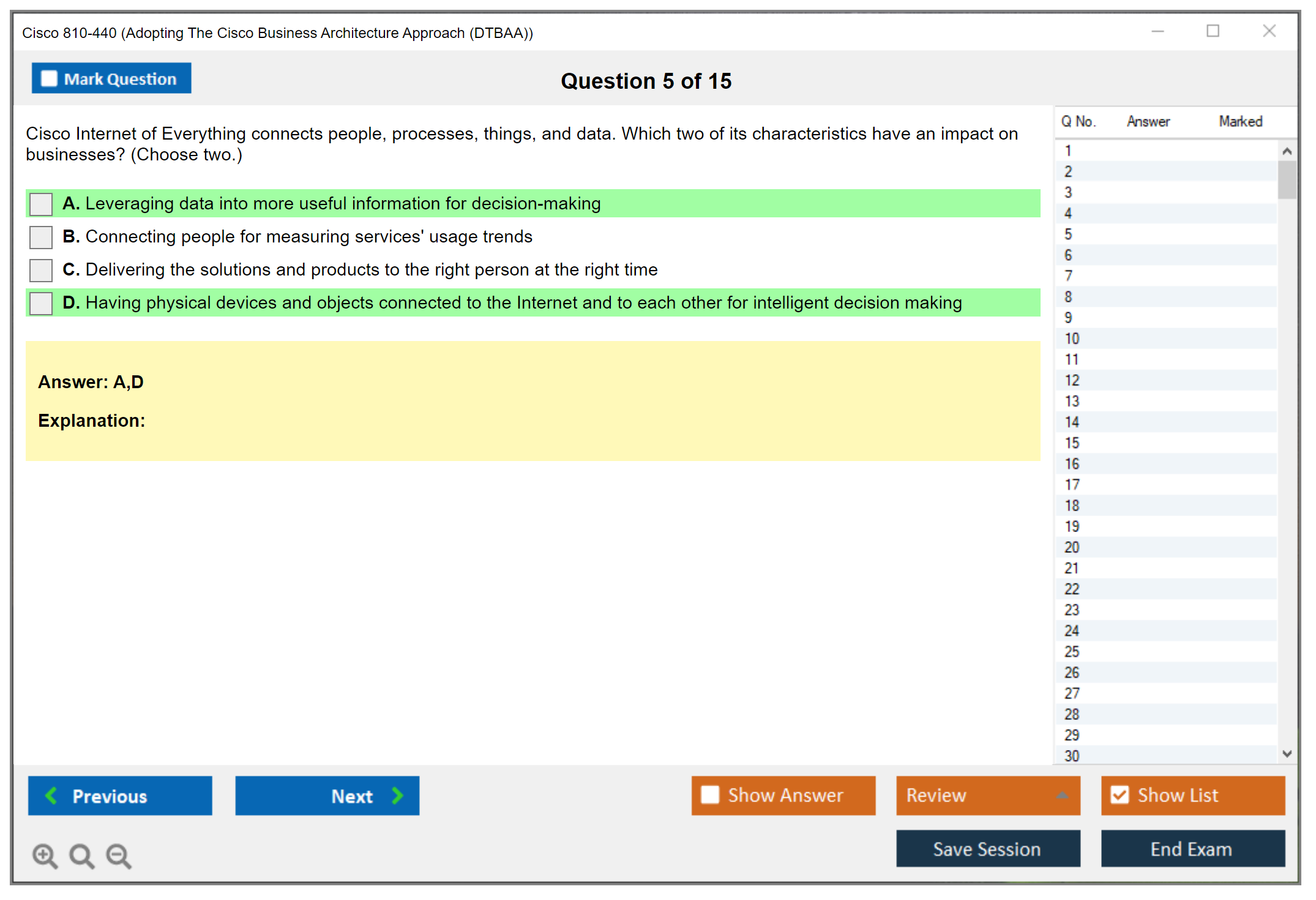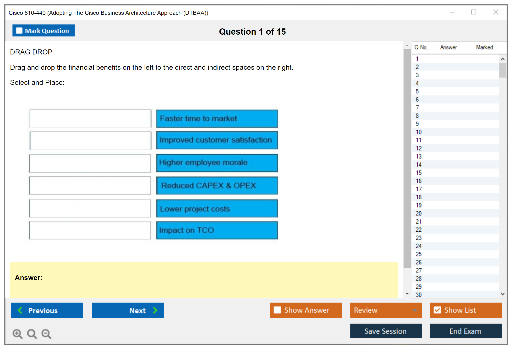 The Cisco 810-440 (Adopting The Cisco Business Architecture Approach (DTBAA)) exam is designed to test a candidate's understanding of the principles and practices involved in adopting a business architecture approach with Cisco solutions. It focuses on the alignment of business and IT strategies, business outcomes, and the development of a business architecture practice.