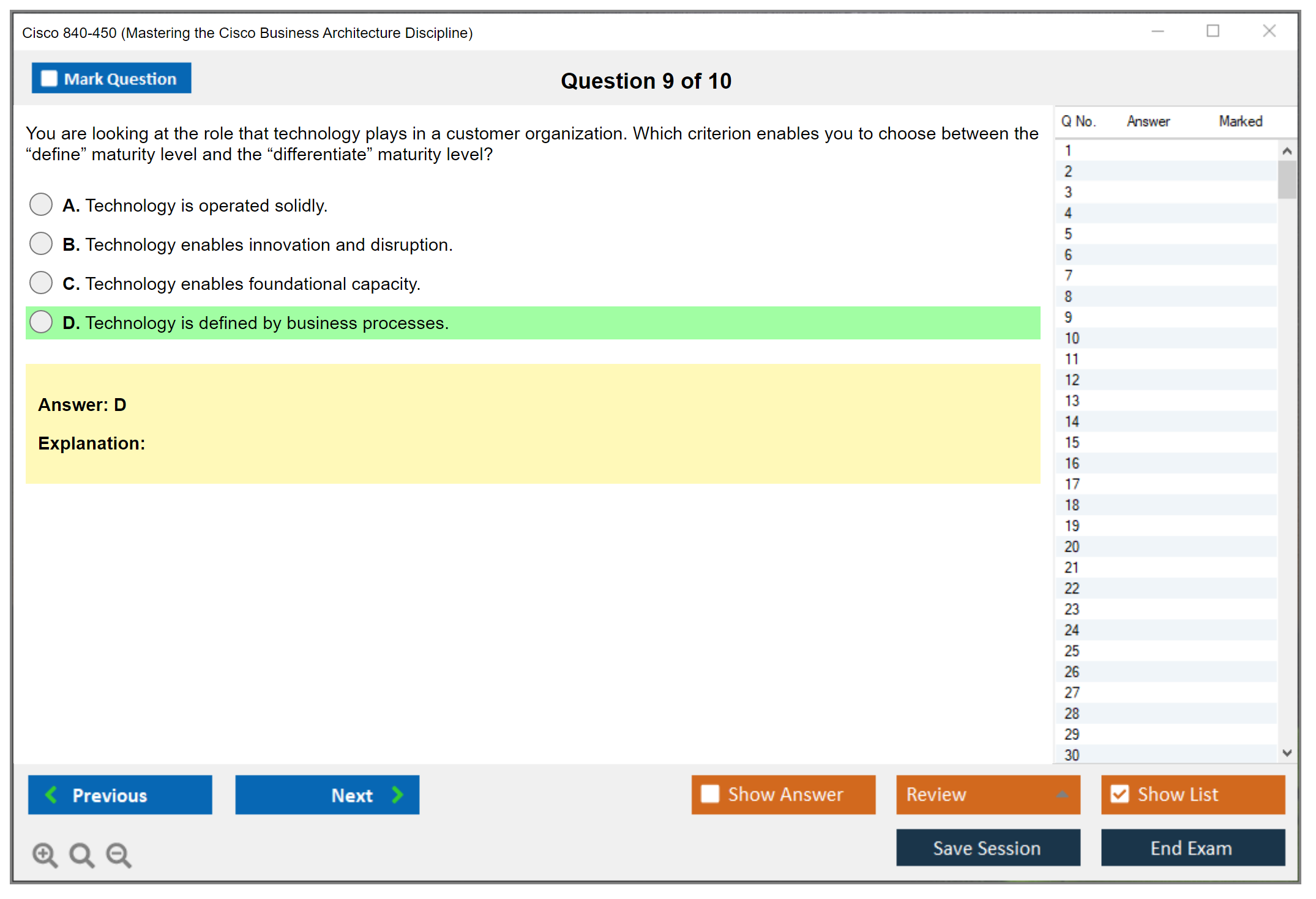 Note: Cisco 840-450 (Mastering the Cisco Business Architecture Discipline) will not receive any new updates.