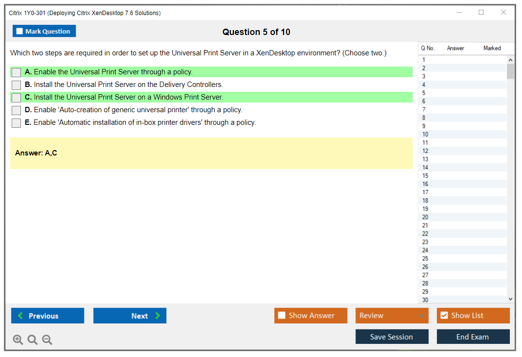 What are the Sample Questions of Citrix 1Y0-301 Exam?
