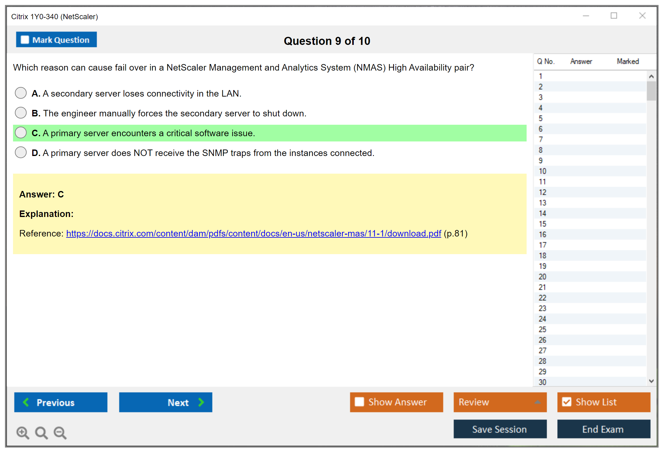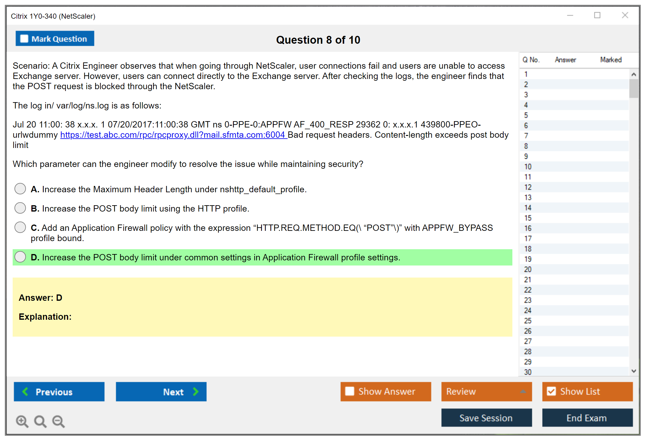 The Citrix 1Y0-340 exam tests candidates on advanced topics related to Citrix NetScaler, including security, management, and optimization. It is part of the Citrix Certified Professional – Networking (CCP-N) certification.