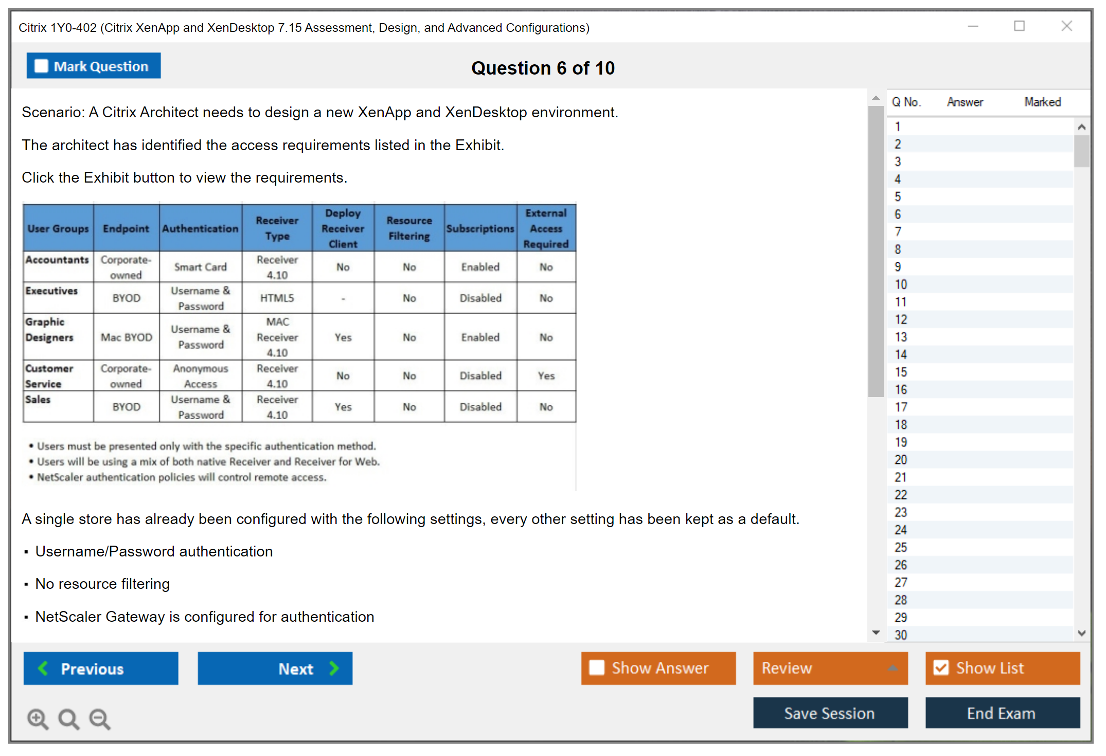 What is the Question Format of Citrix 1Y0-402 Exam?