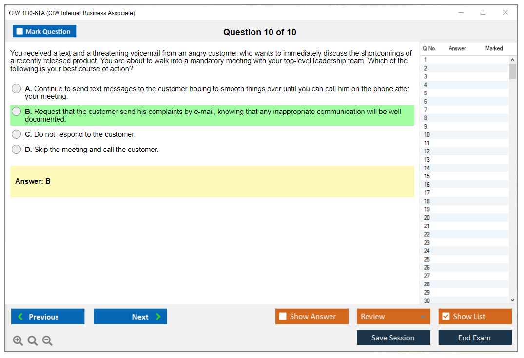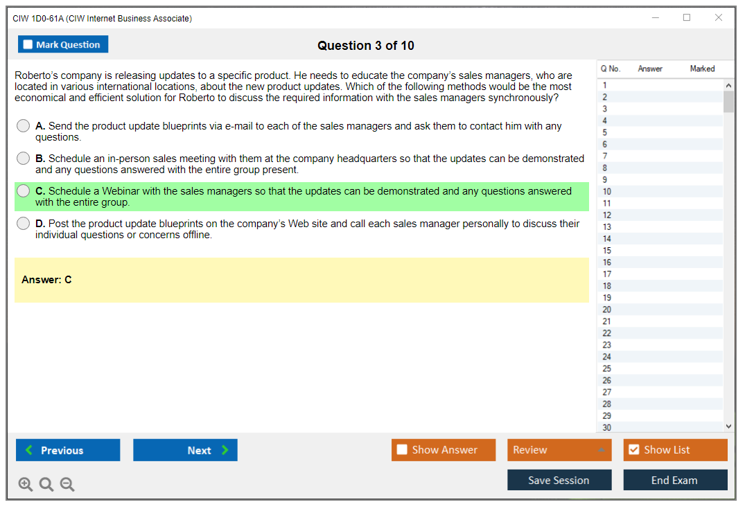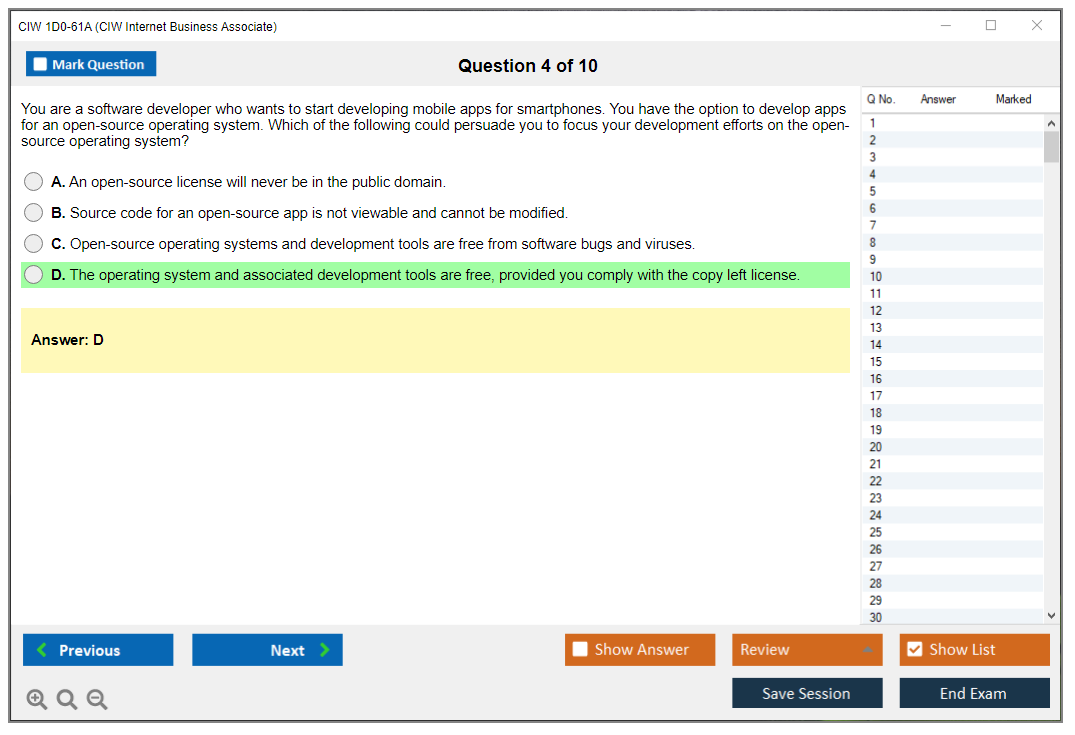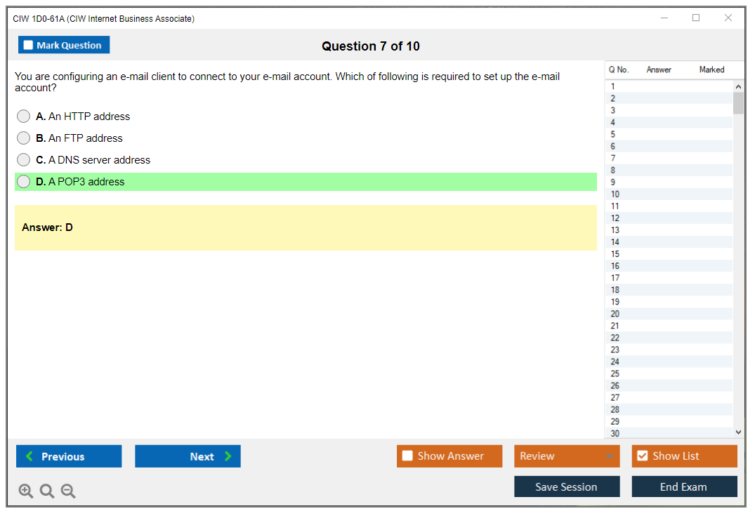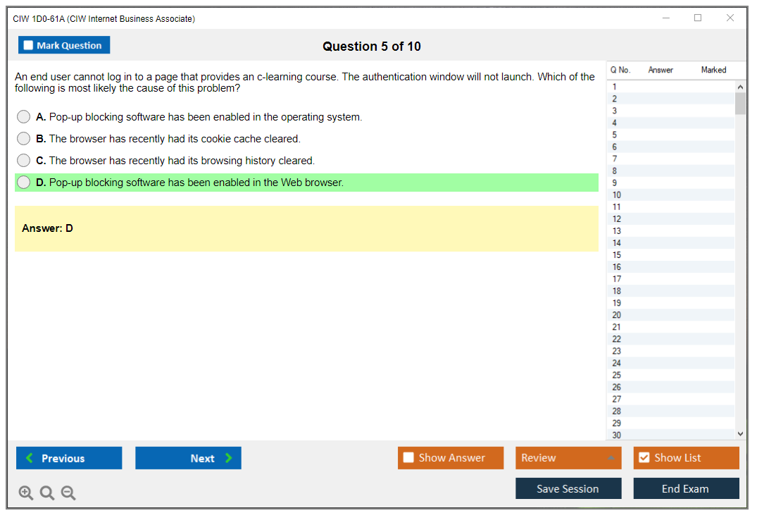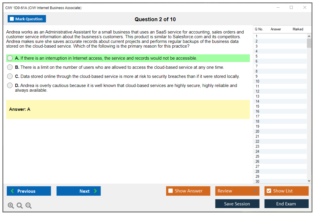 The CIW 1D0-61A (Internet Business Associate) Exam is designed to test the knowledge and skills of individuals regarding fundamental aspects of internet business. This includes understanding internet connection methods, web browsers, internet security, and more.