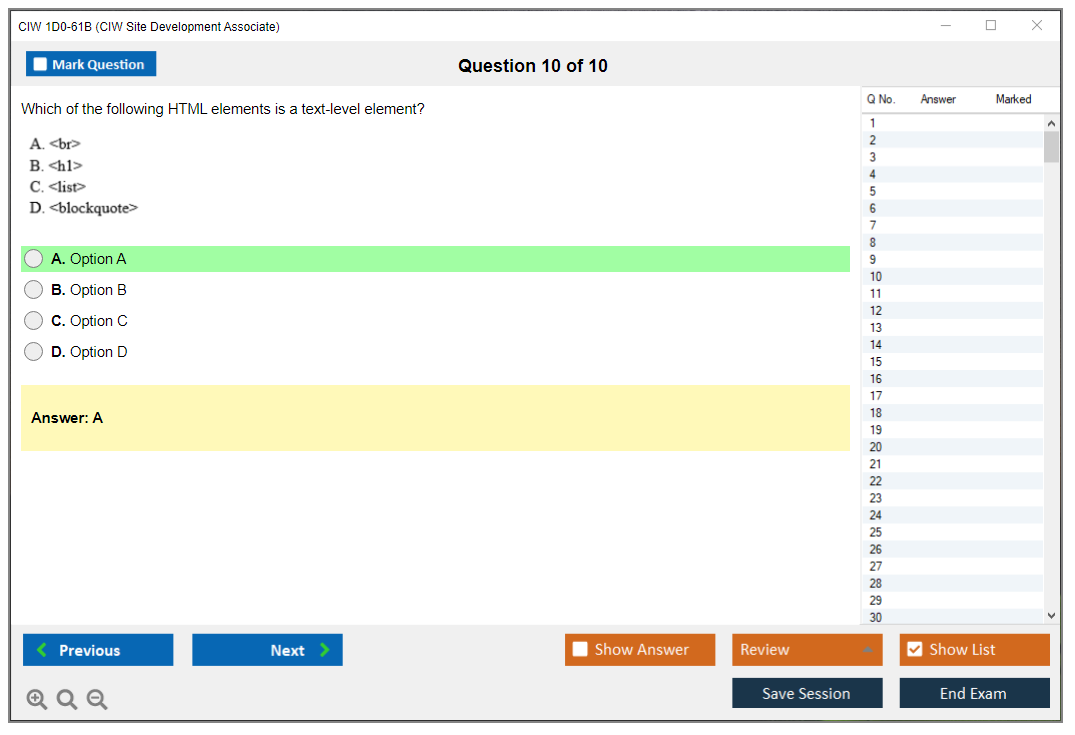 The CIW 1D0-61B Exam consists of 30 questions.