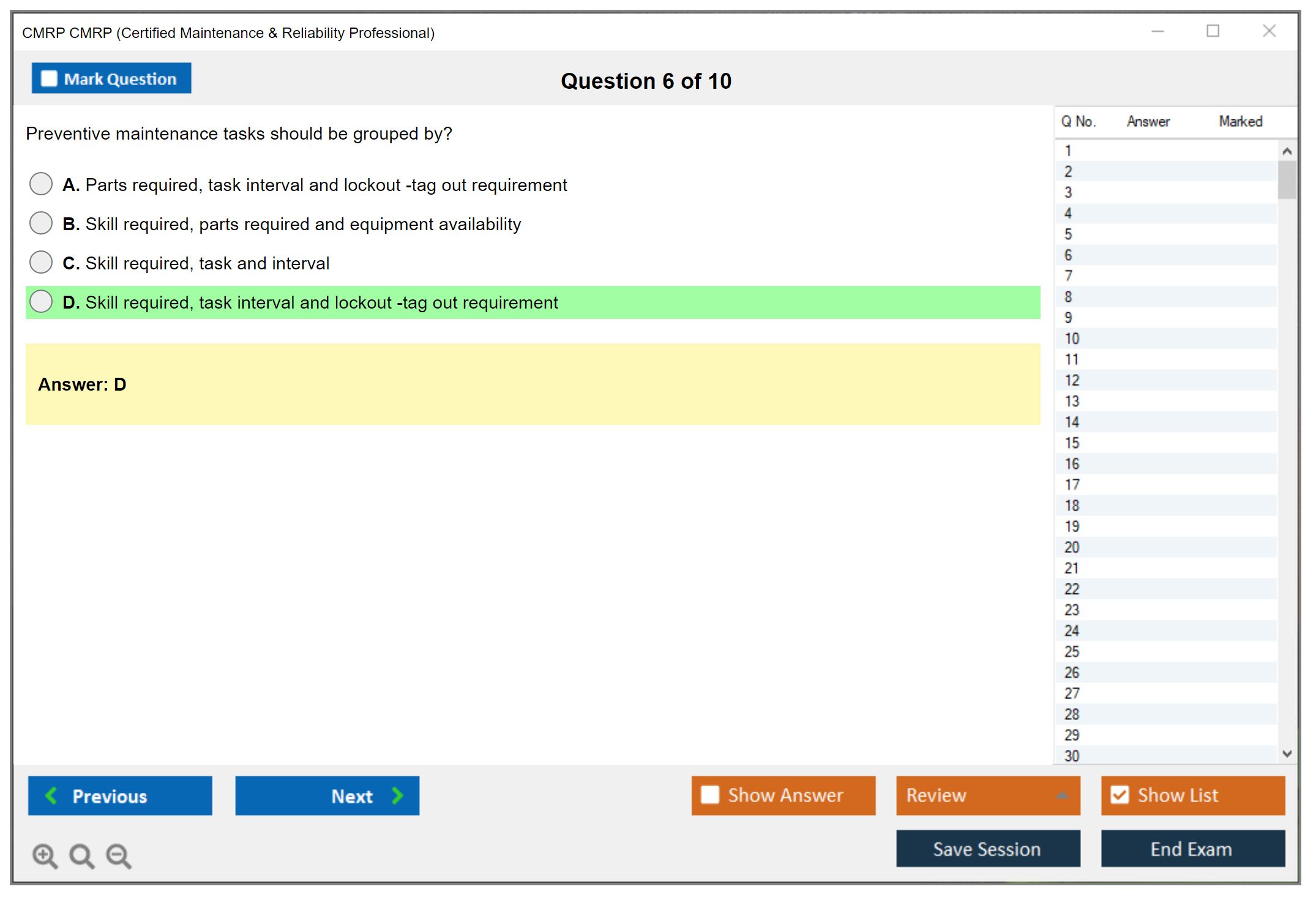 The Certified Maintenance & Reliability Professional (CMRP) Exam is a globally recognized certification designed for professionals in the maintenance and reliability industry. It validates the knowledge, skills, and abilities required to excel in the field of maintenance and reliability.