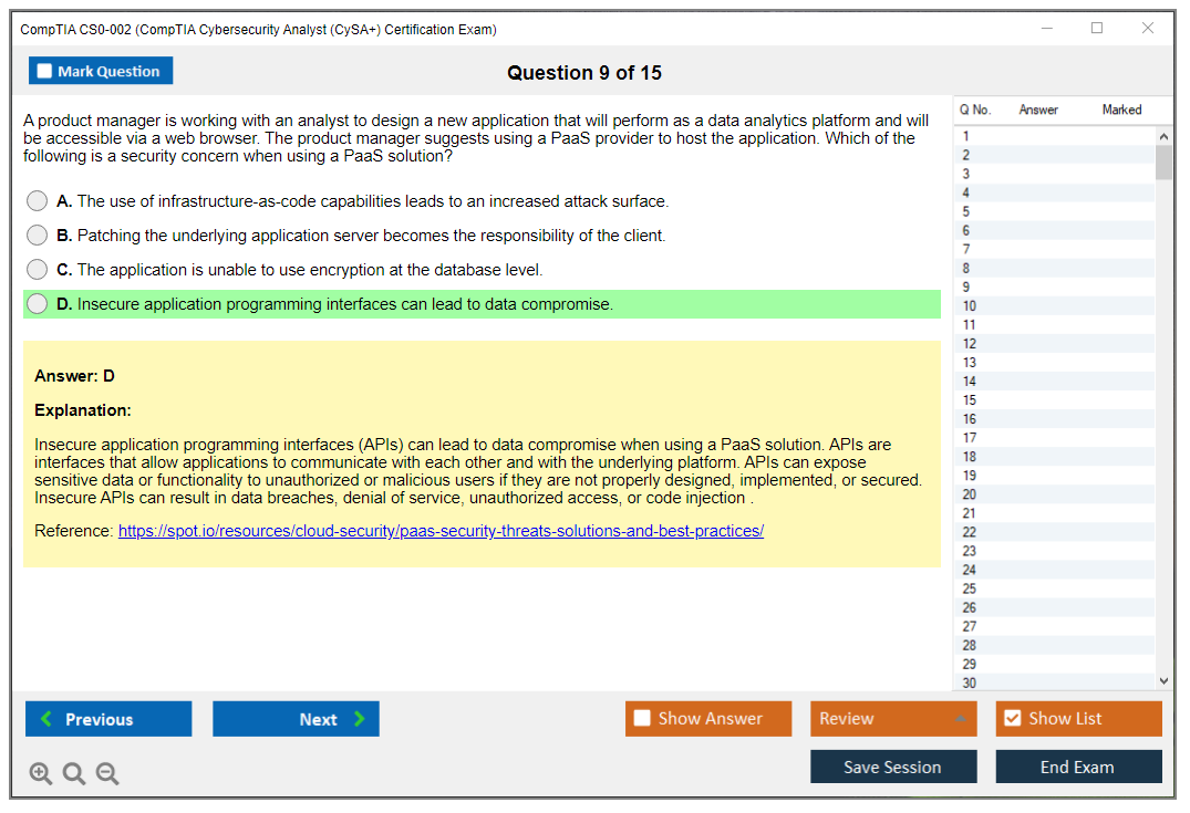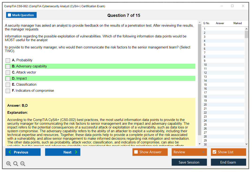 The question format of the CompTIA CS0-002 exam includes multiple-choice questions (both single and multiple response), drag and drops, and performance-based questions (PBQs) that require candidates to solve problems in a simulated environment.