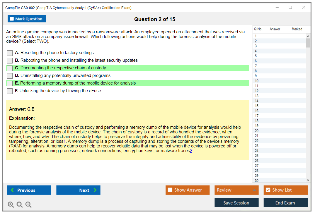 The CompTIA CS0-002 exam is part of the CompTIA Cybersecurity Analyst (CySA+) certification, which aims to validate a candidate's ability to use behavioral analytics to improve the overall state of IT security. The exam covers a range of topics including threat management, vulnerability management, security architecture, and cyber incident response.